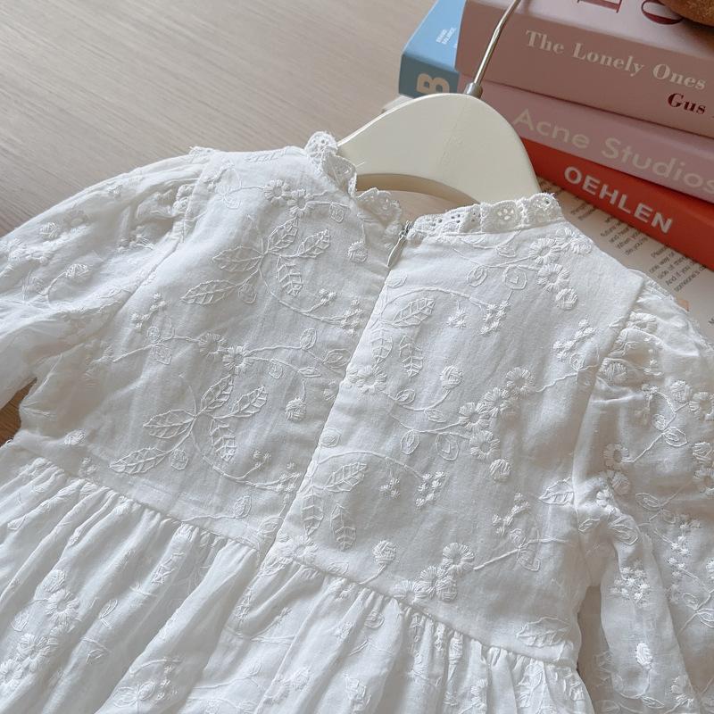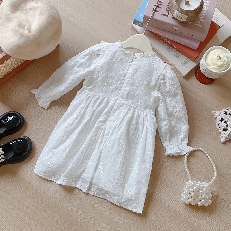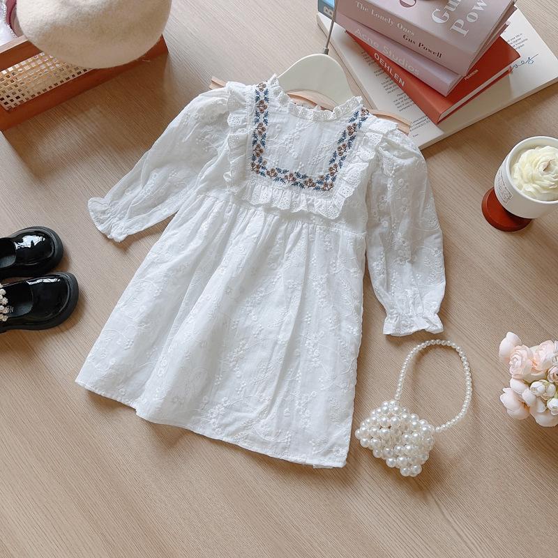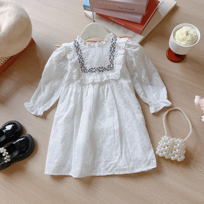 Meninas vestido de renda primavera e outono nova moda doce bordado boneca vestido de princesa