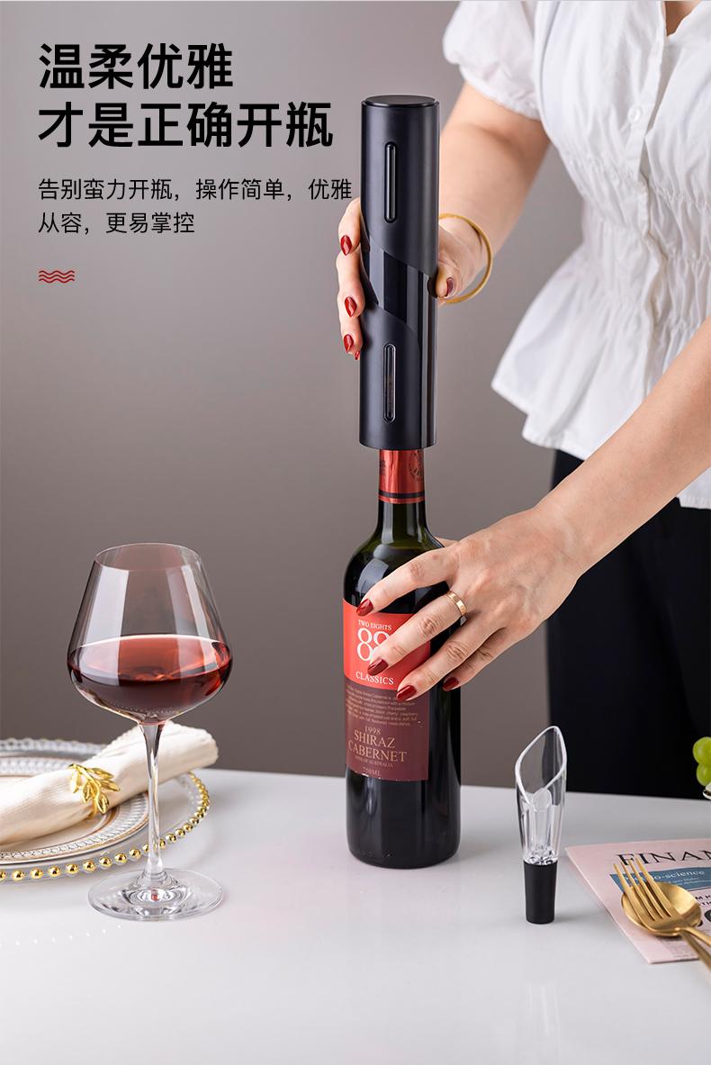[buy one, get two free] black battery bottle opener + vacuum stopper + elegant wine glass*2♜