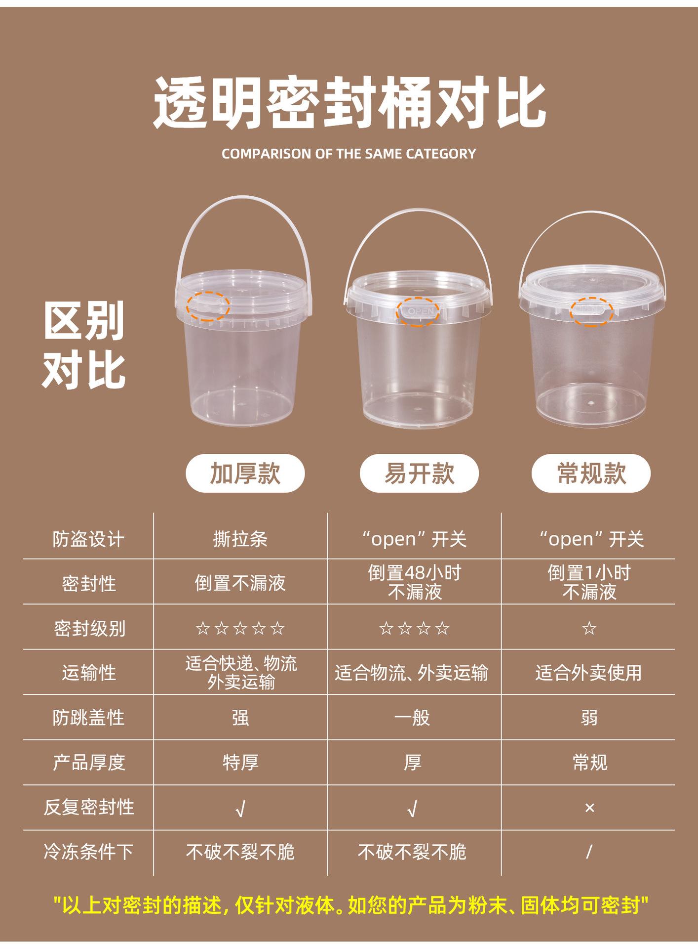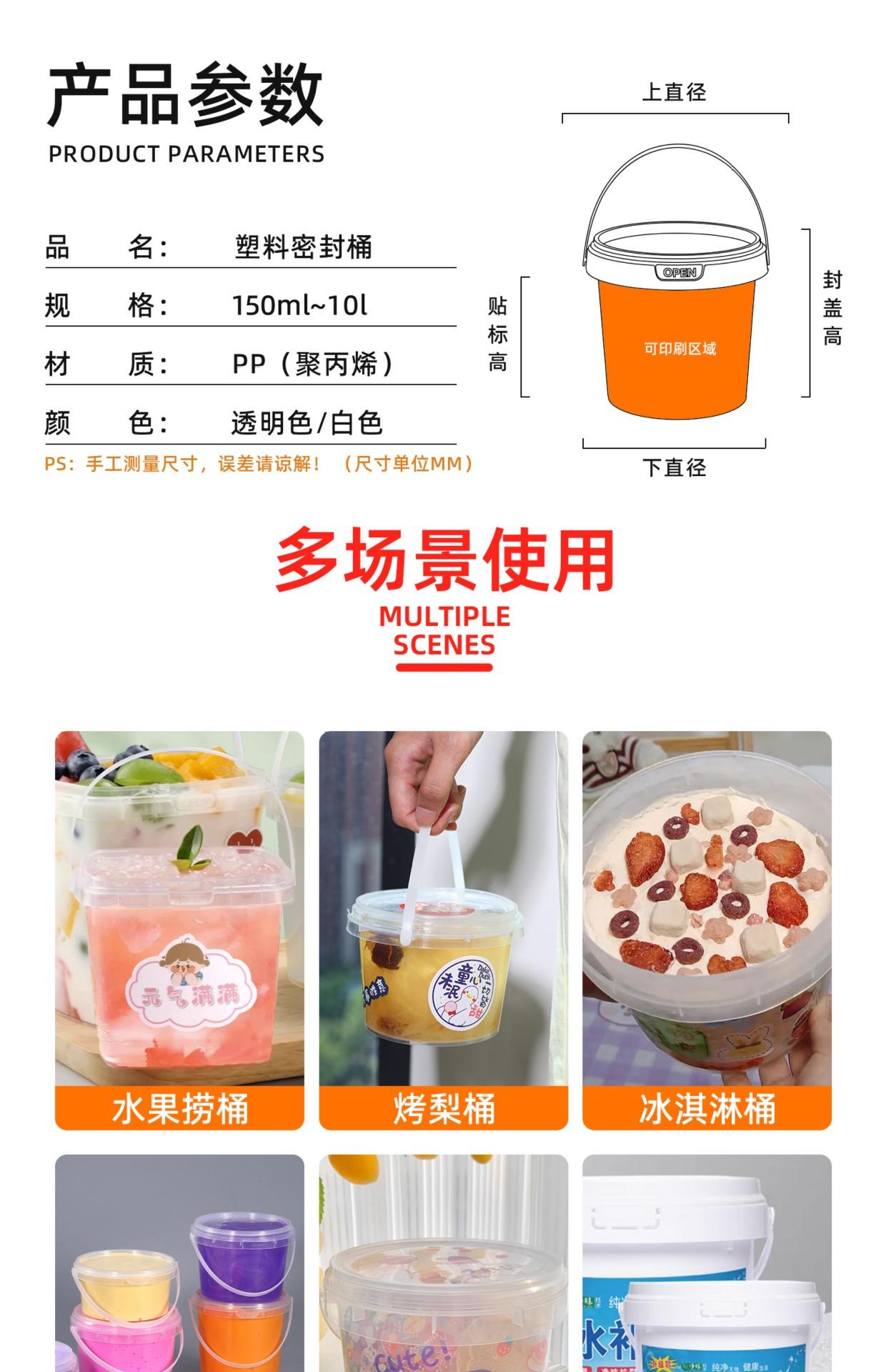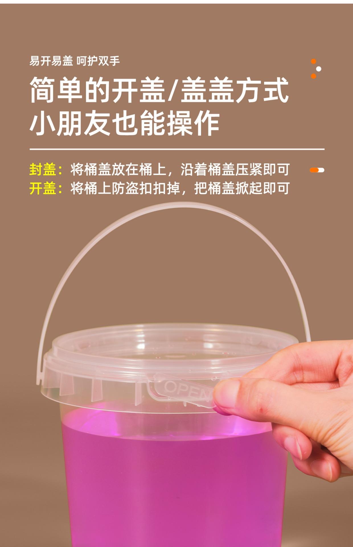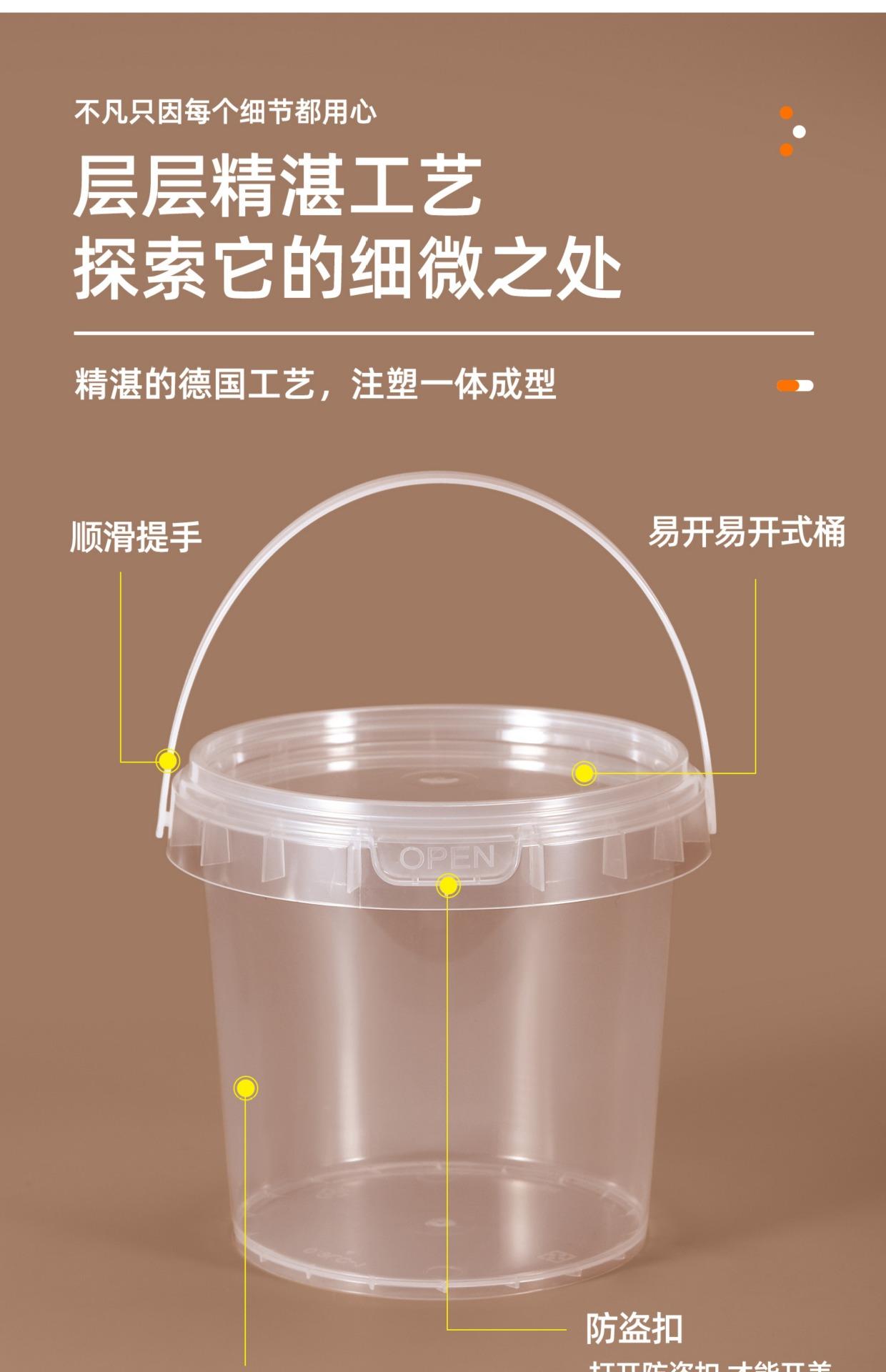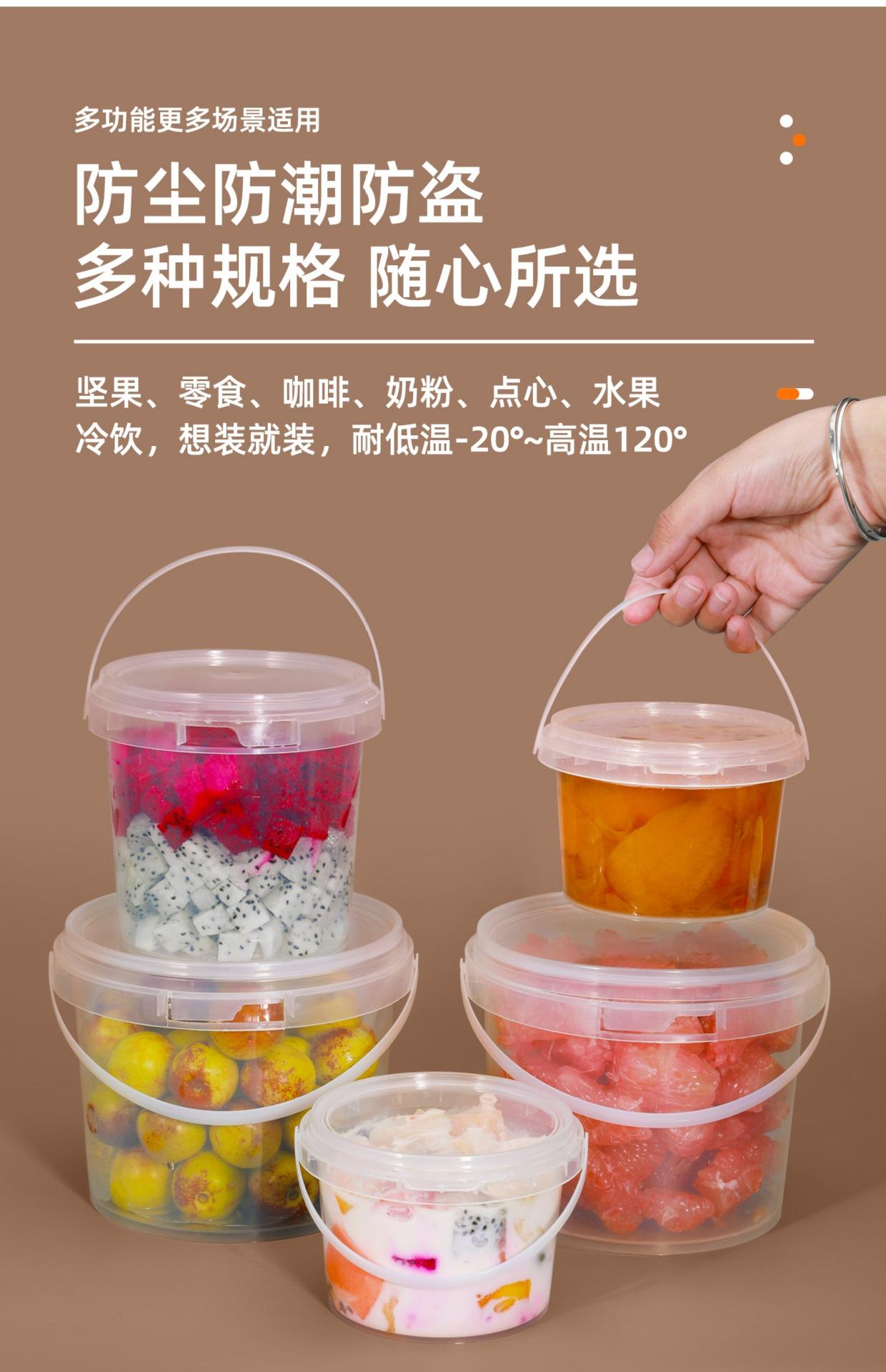Balde de plástico de qualidade alimentar com tampa caixa de embalagem de pesca de frutas transparente balde de gelo em pó balde para viagem balde de chá de leite balde de molho balde