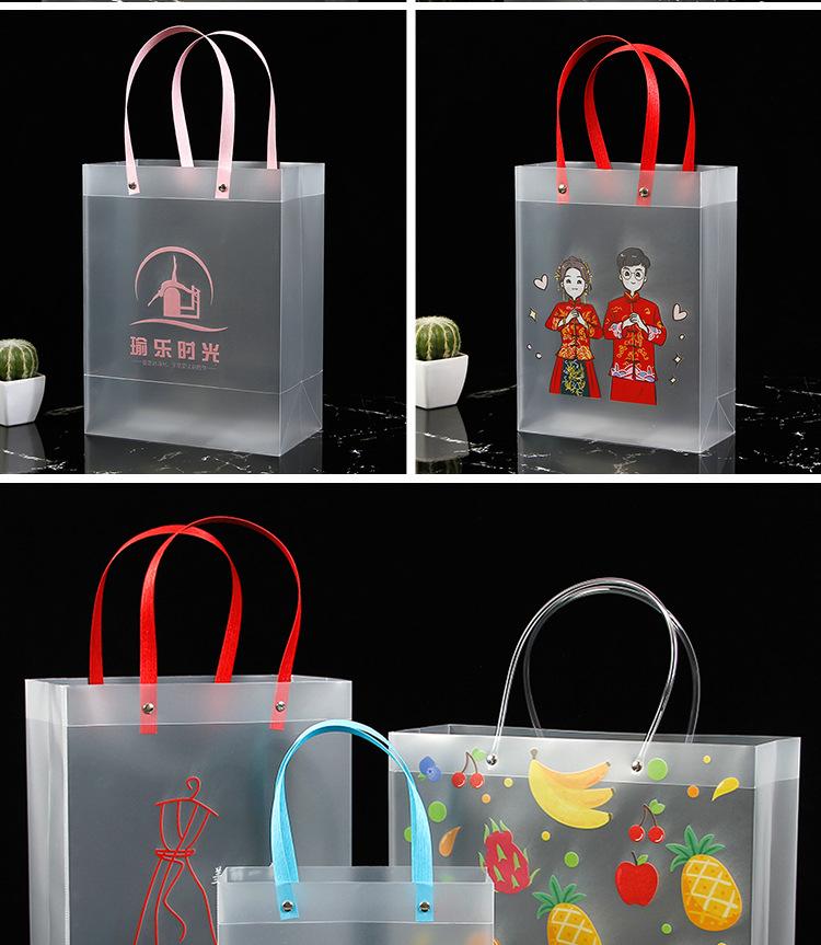 Saco de presente transparente conjunto de sacola de plástico pvc atacado pp fosco saco de loja de roupas pequeno sistema de saco de embalagem de presente