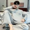 Pijama de seda de gelo masculino de mangas compridas primavera e outono leopardo jacquard leve luxo solto estilo coreano solto 180 kg wearable homewear