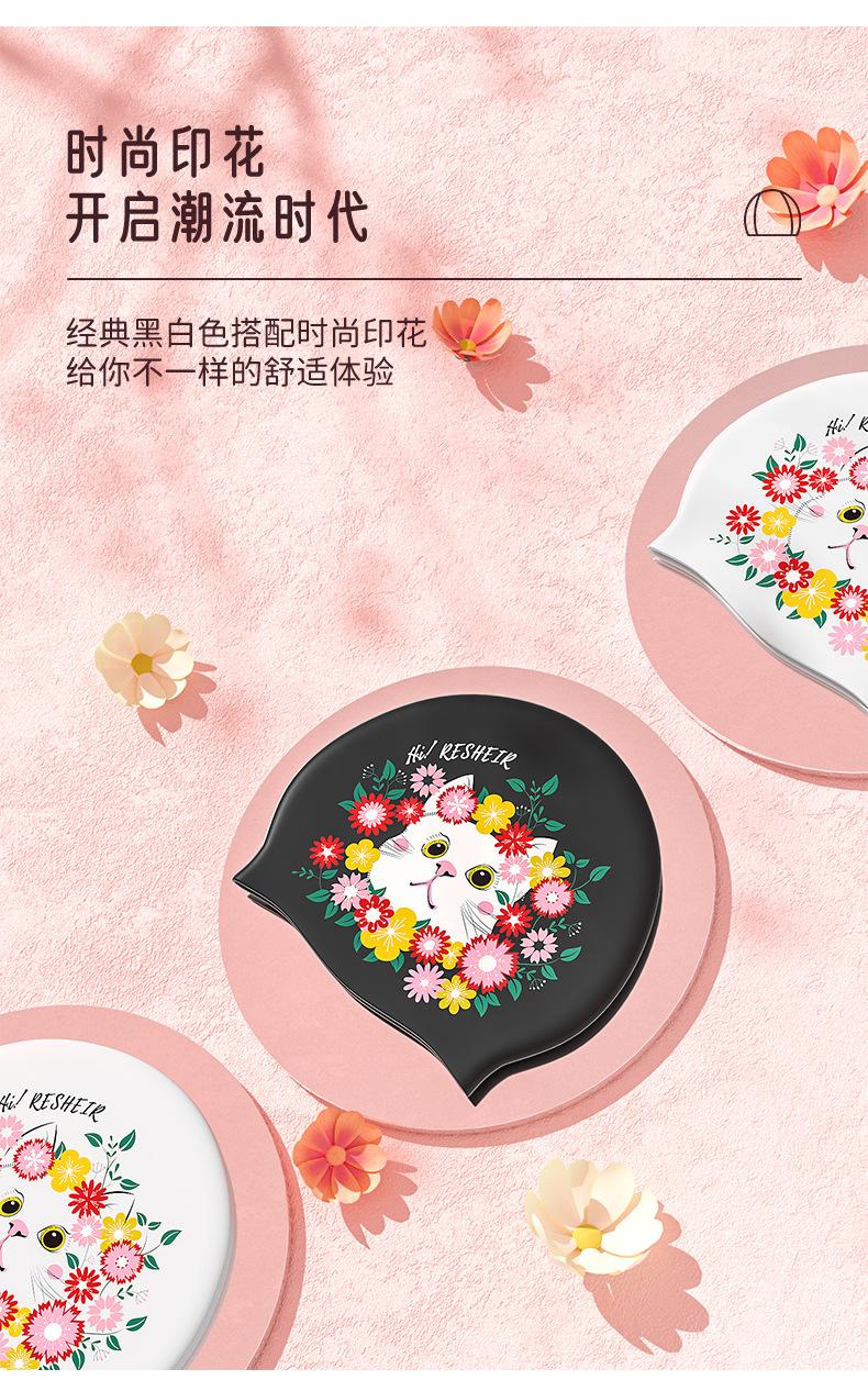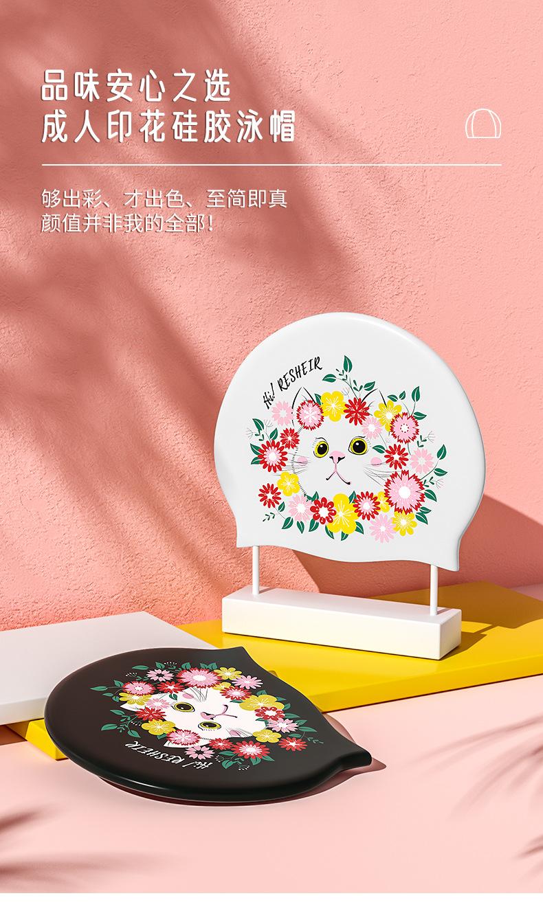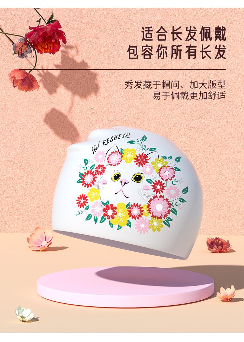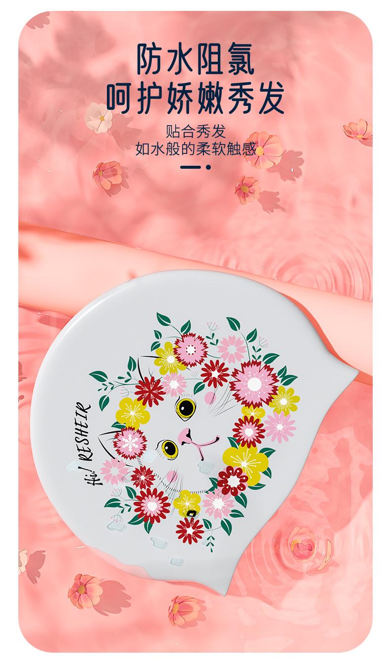 Direto da fábrica de silicone touca de natação impressão de moda grande proteção auditiva grande à prova d'água adulto feminino touca de natação