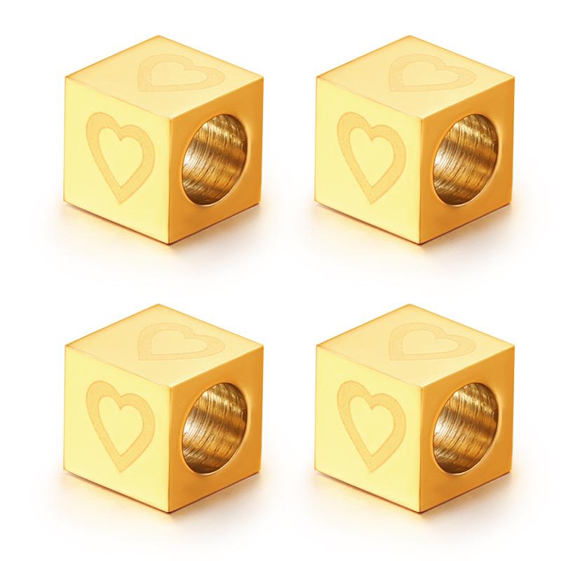 Contas de letras de aço inoxidável através de contas de furos quatro lados em relevo vácuo pulseira de ouro pulseira acessórios de joias faça você mesmo