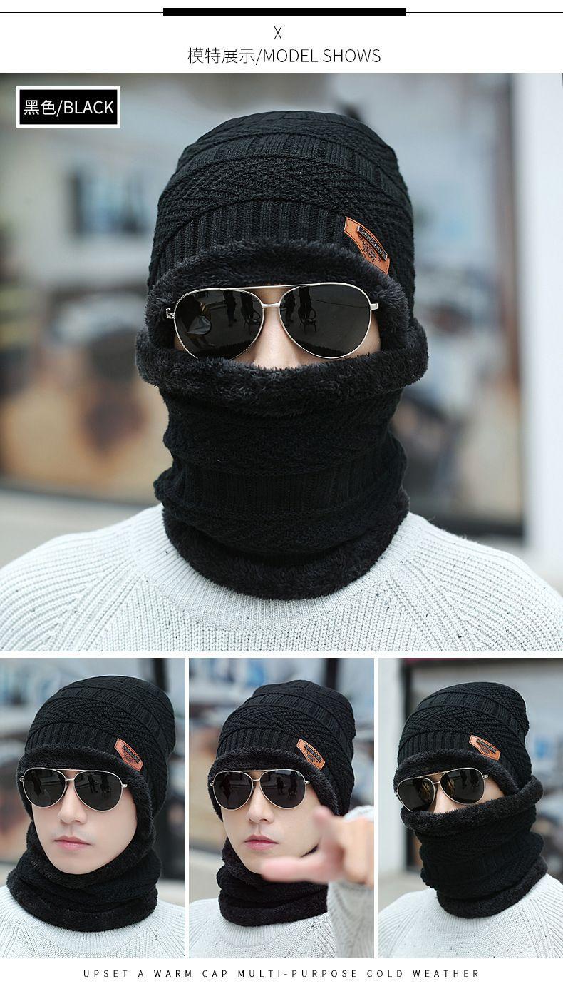 Thickened classic black (hat + scarf), Thickened classic gray (hat + scarf), Thickened classic navy blue (hat ...