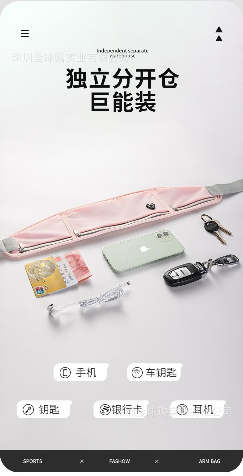 Cintura esportiva Bolsa Multifuncional Corrida ao ar livre Telefone móvel Fitness masculino e feminino à prova d'água Invisível de três bolsos Lycra Cintura ultrafina Bolsa