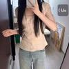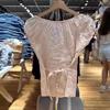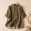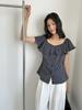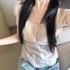 Blusa Feminina de Linho de Manga Curta Bufante com Três Botões Estilo Bm Nova Slim Fit Camiseta Curta Verão