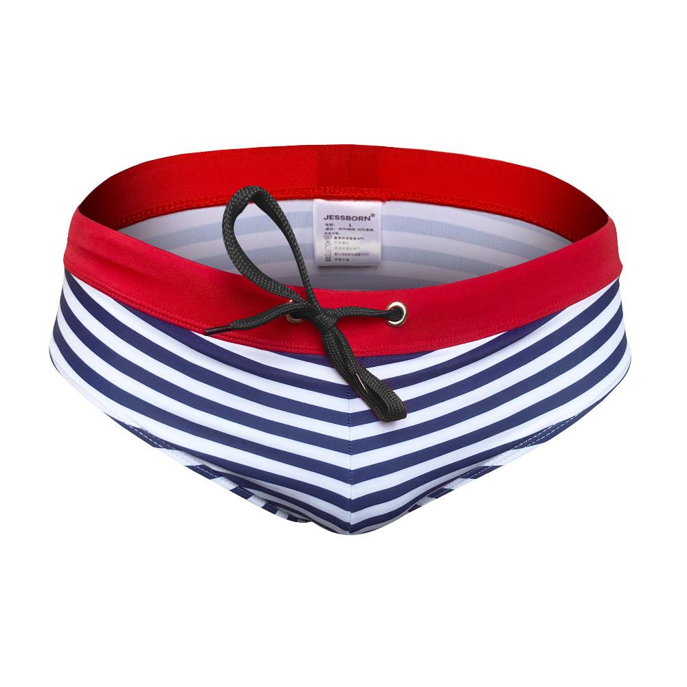 JESSBORN calção de banho triangular masculino listrado cintura baixa sexy europeu e americano calção de banho esportivo de secagem rápida maiô justo verão