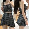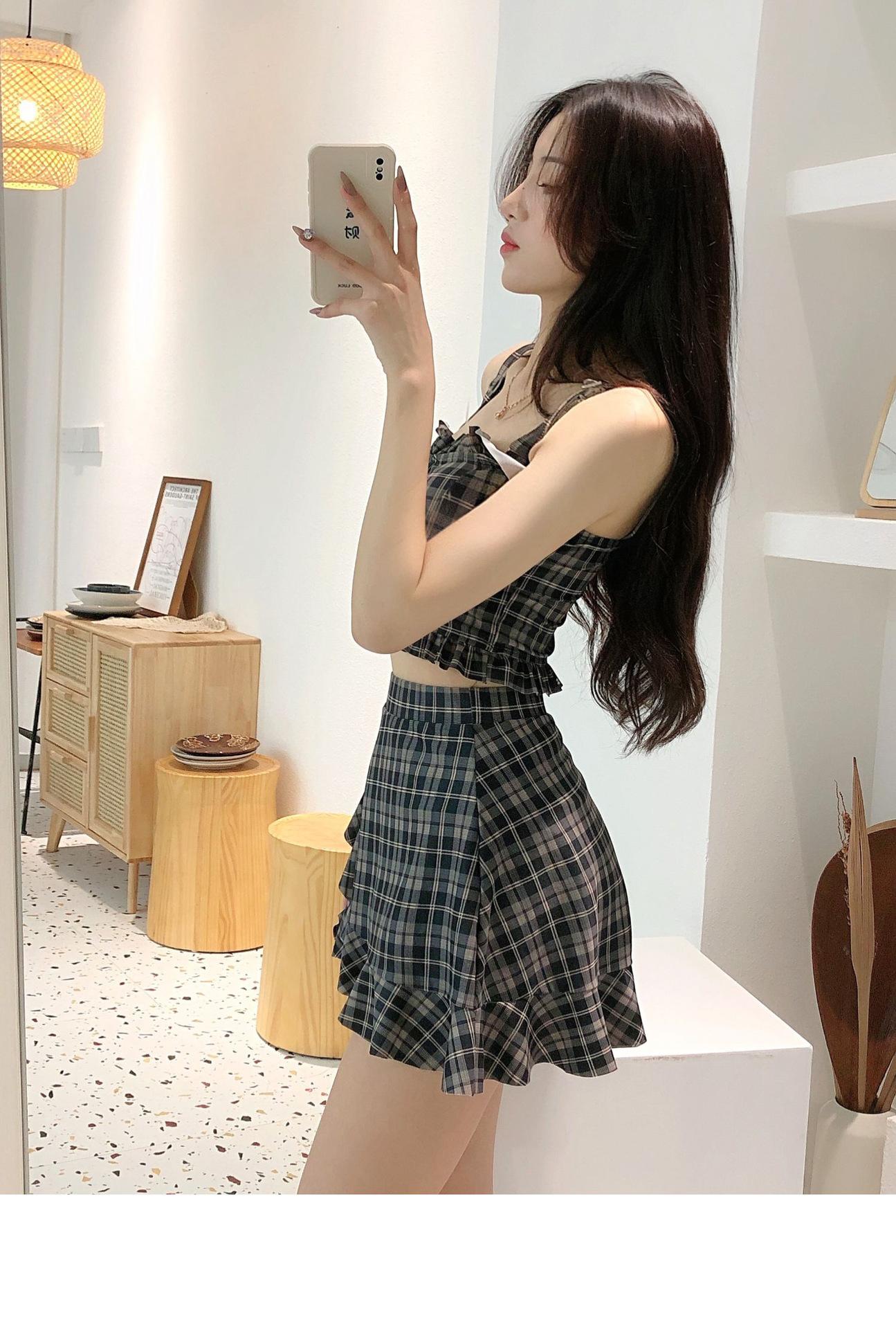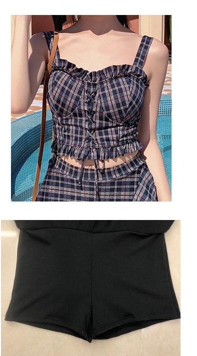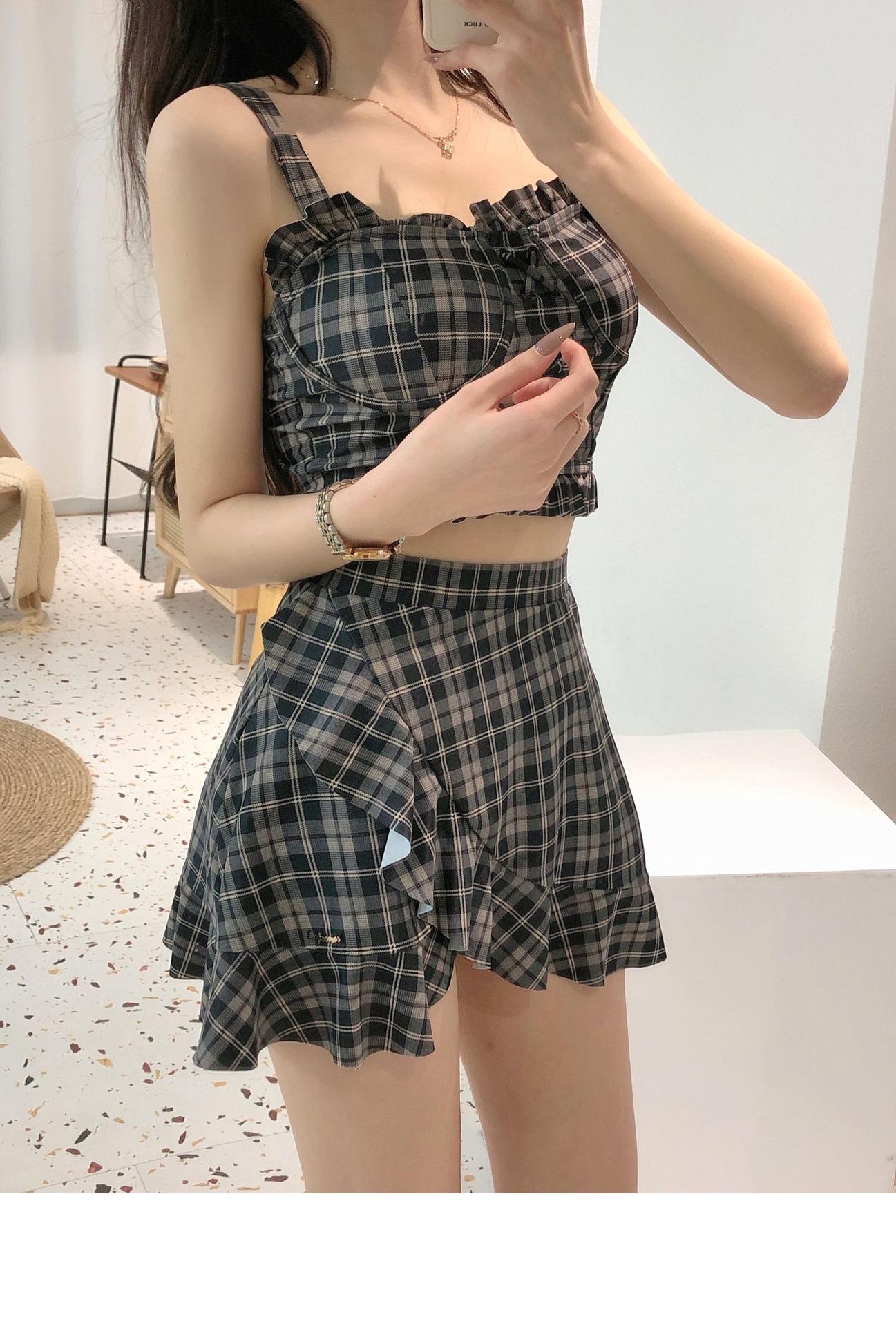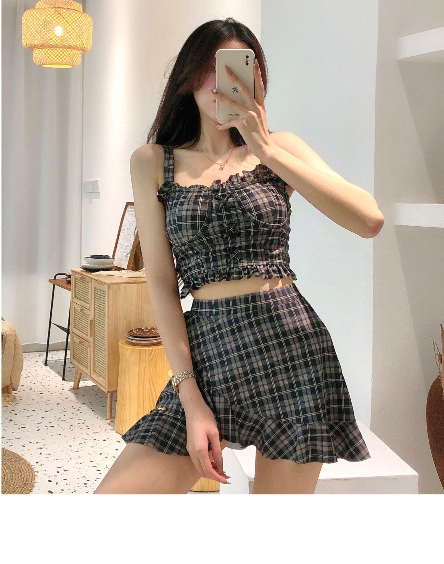 Maiô Feminino Suspensório Dividido Duas Peças Maiô Xadrez Retrô Menina Conservador Emagrecimento Férias Banho de Águas Termais Atacado