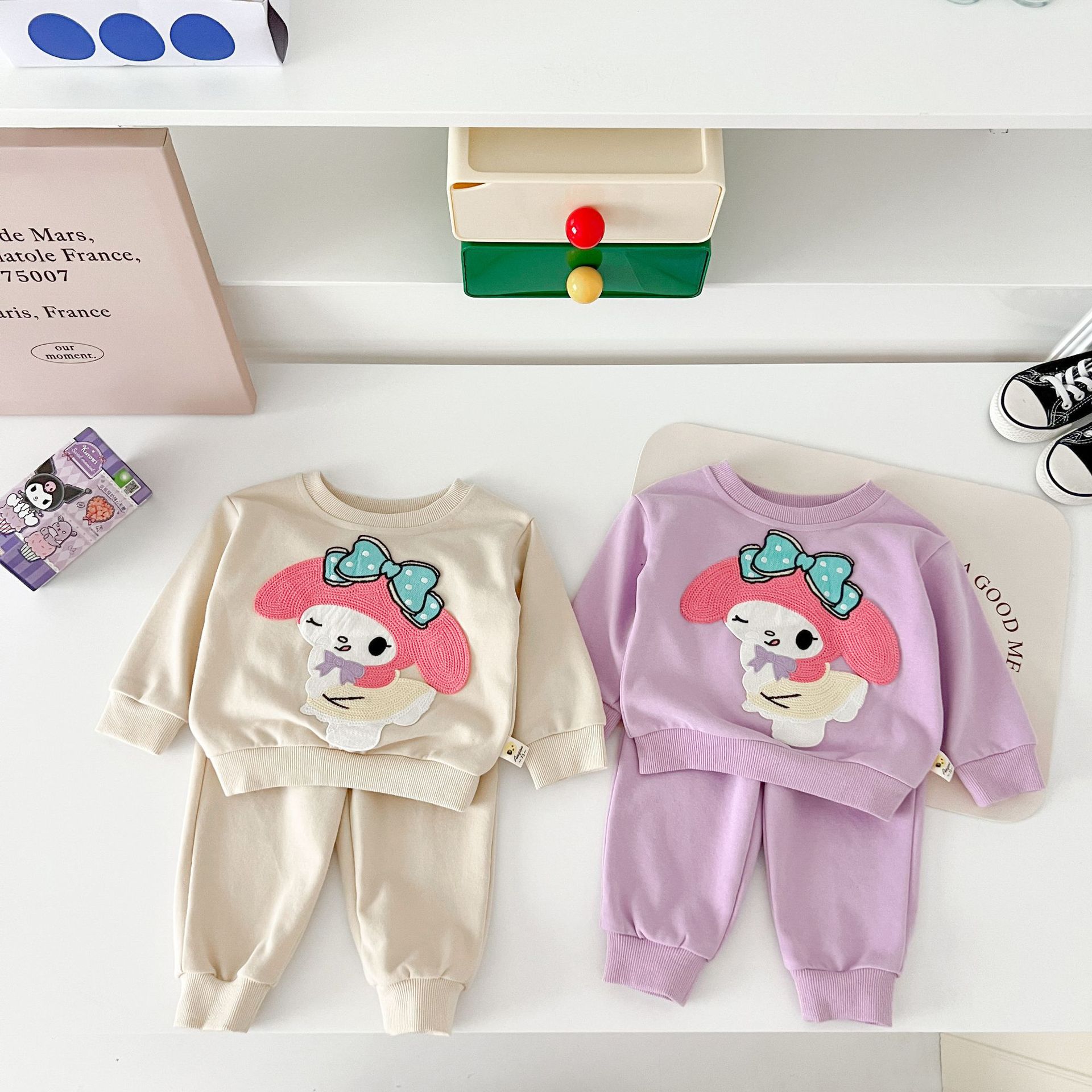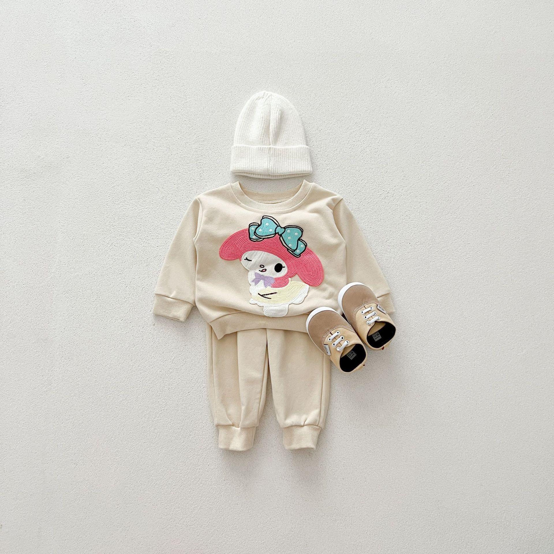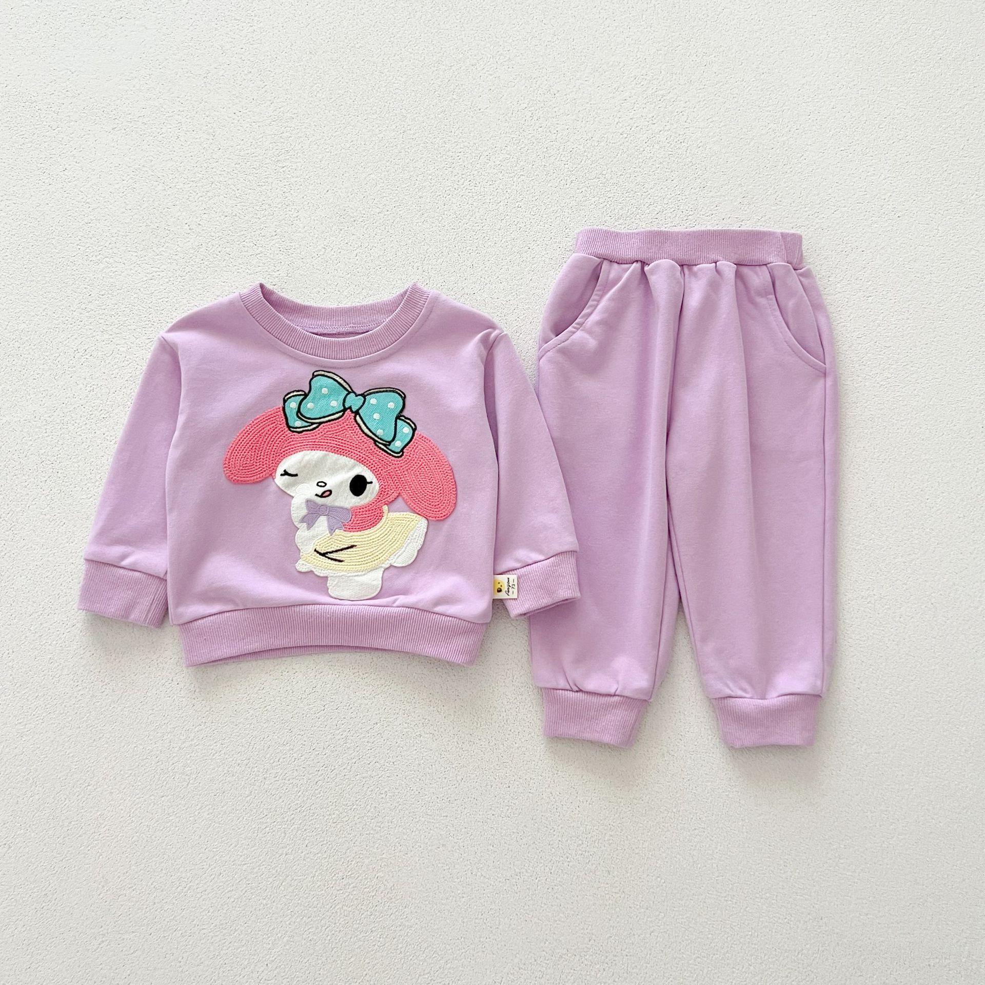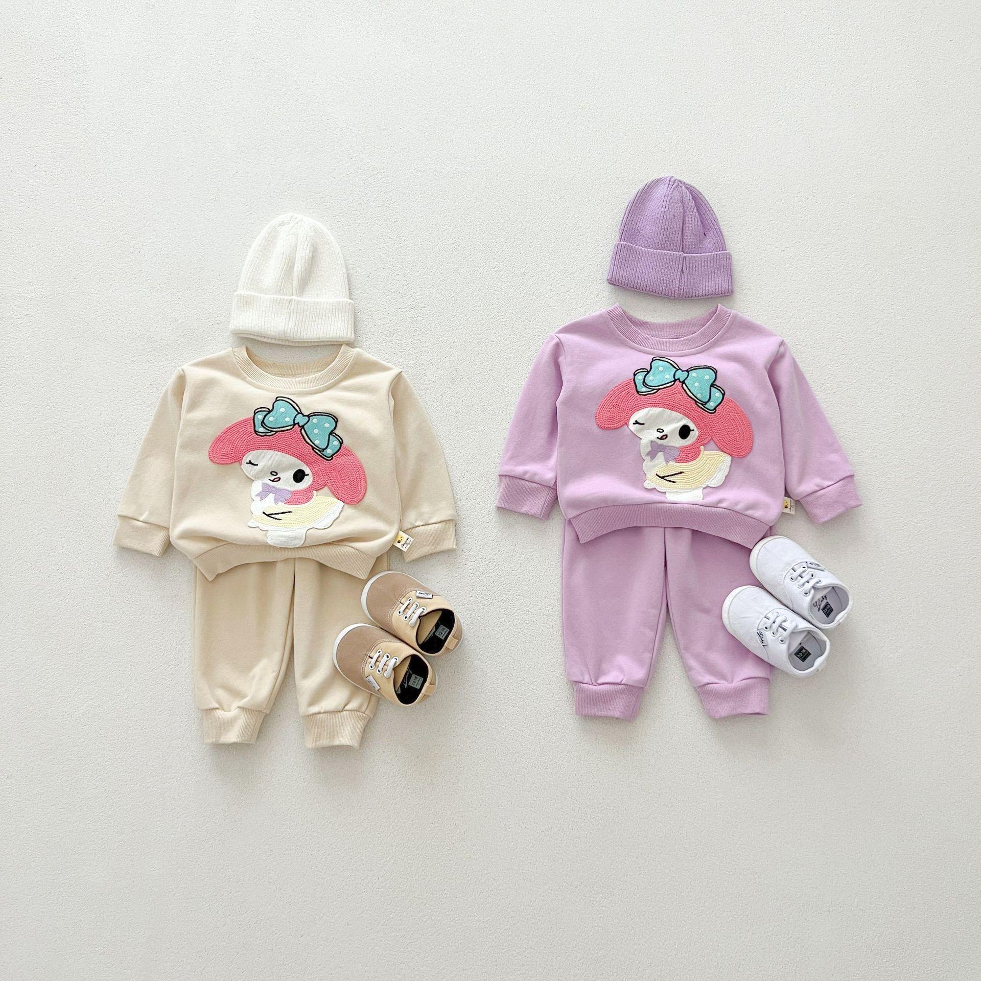 Outono Novo Terno Casual Infantil Bebê Menina Bordado Dos Desenhos Animados Camisola Estilo Ocidental Sweatpants Conjunto de Duas Peças