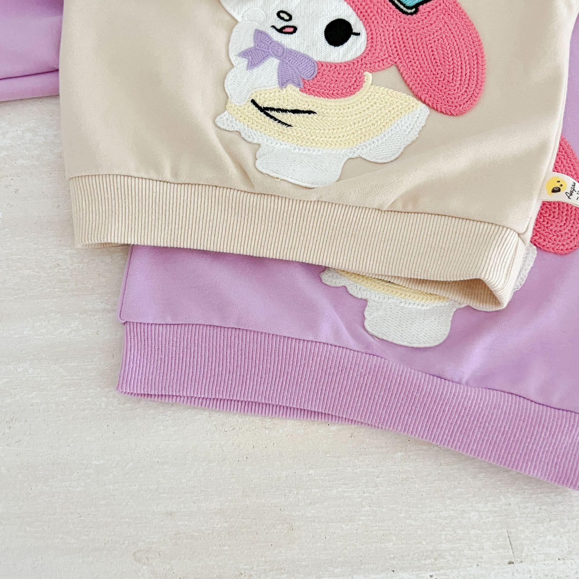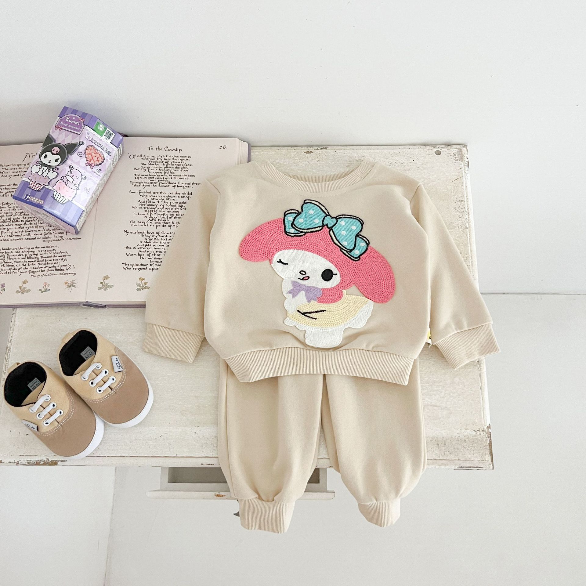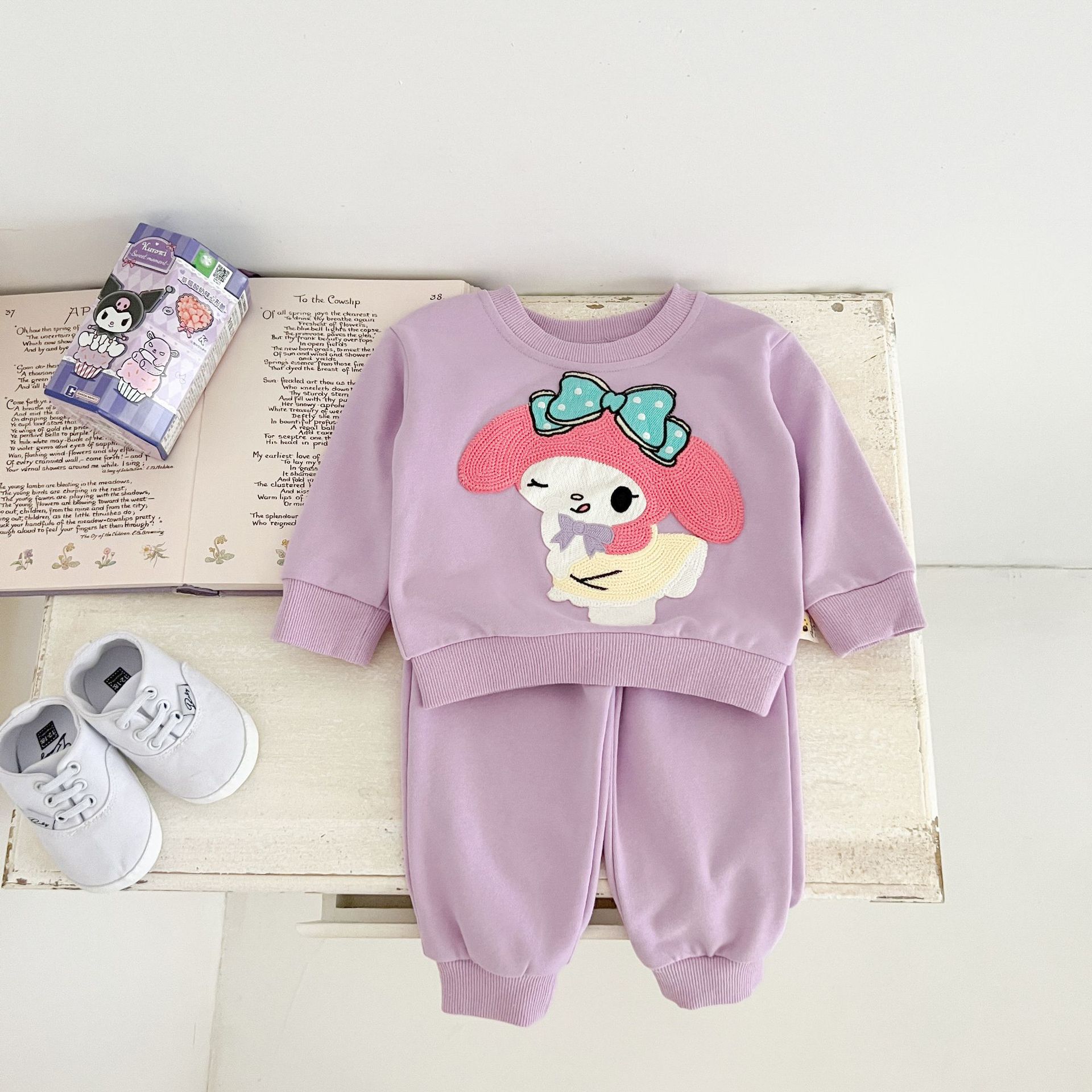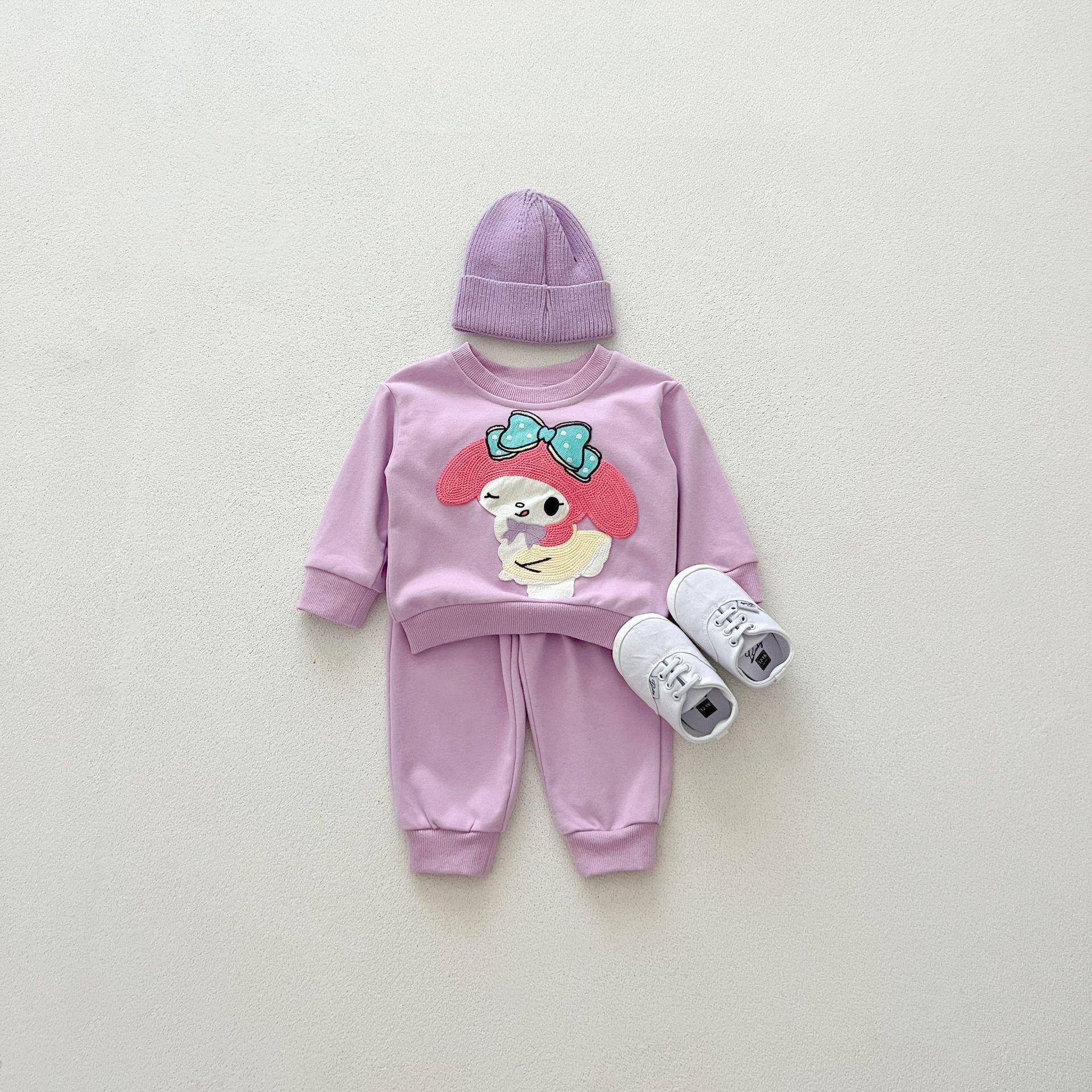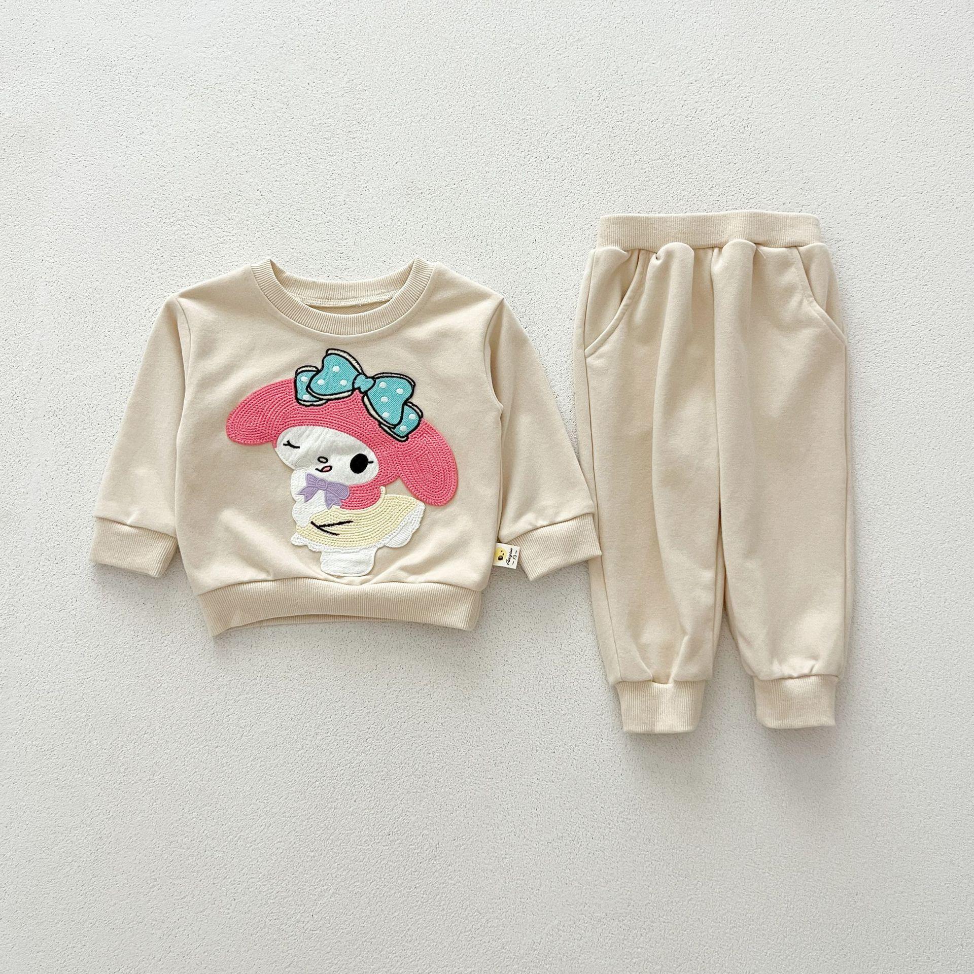 Outono Novo Terno Casual Infantil Bebê Menina Bordado Dos Desenhos Animados Camisola Estilo Ocidental Sweatpants Conjunto de Duas Peças
