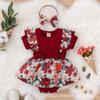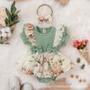 Verão Roupas de Bebê Recém-Nascido Vestido Macacão Triângulo Manga Curta Floral Renda Laço para Meninas