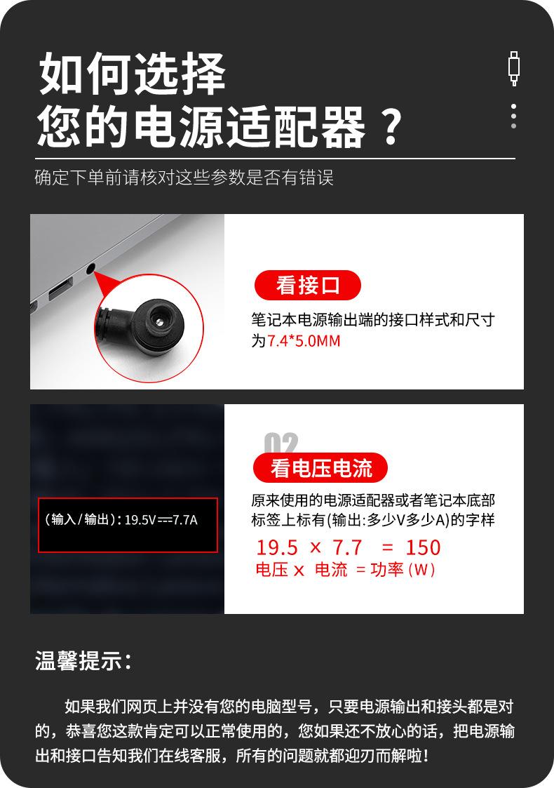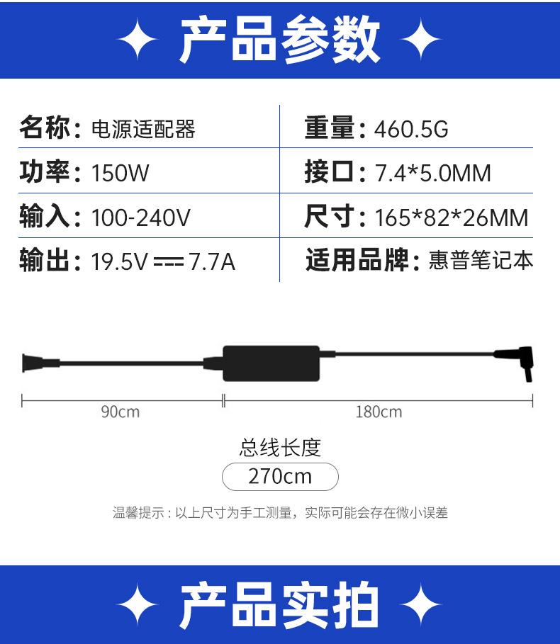Aplicável ao Adaptador de Energia para Notebook HP 150w 19.5V7.7A Carregador de Computador 7.4x 5.0mm Boca Larga
