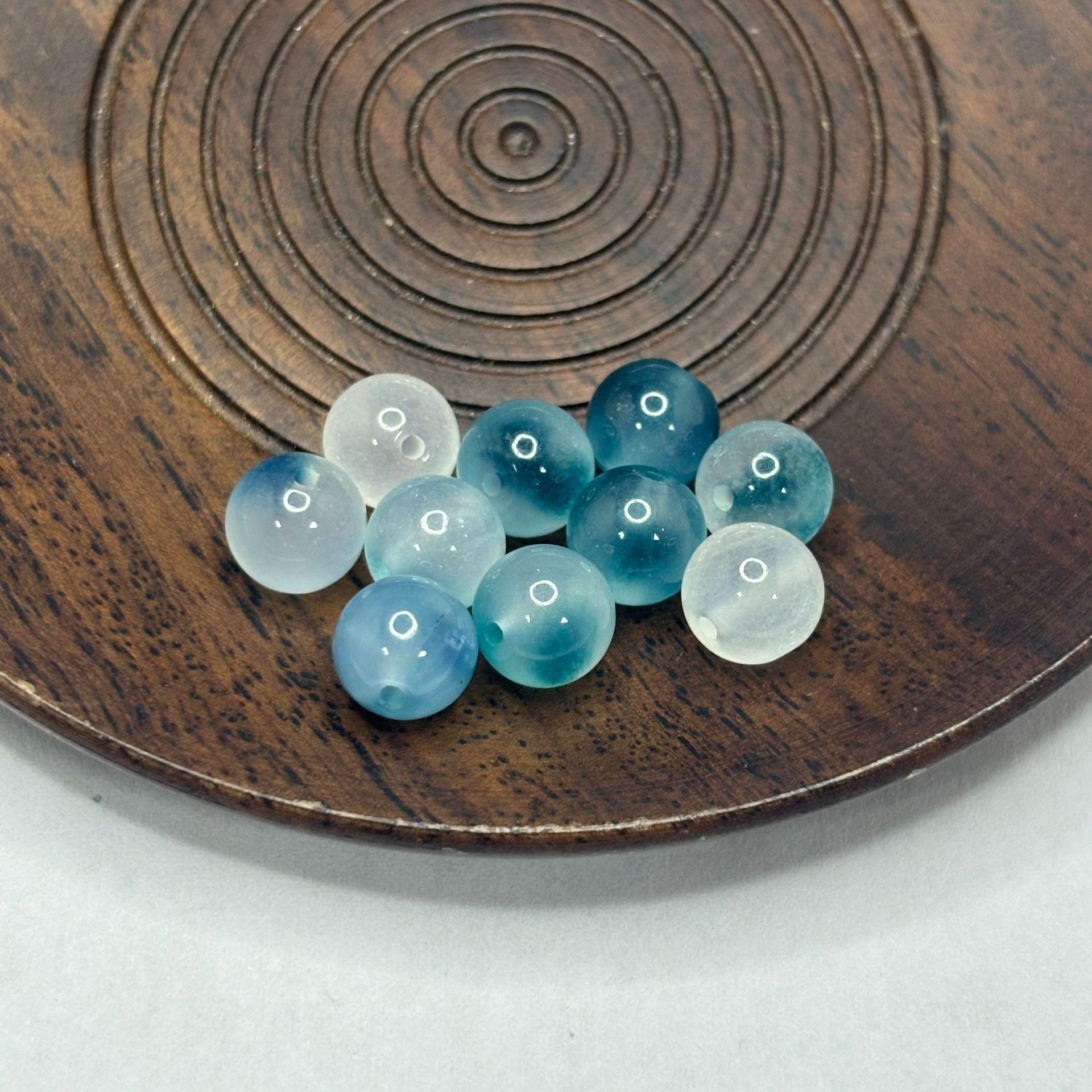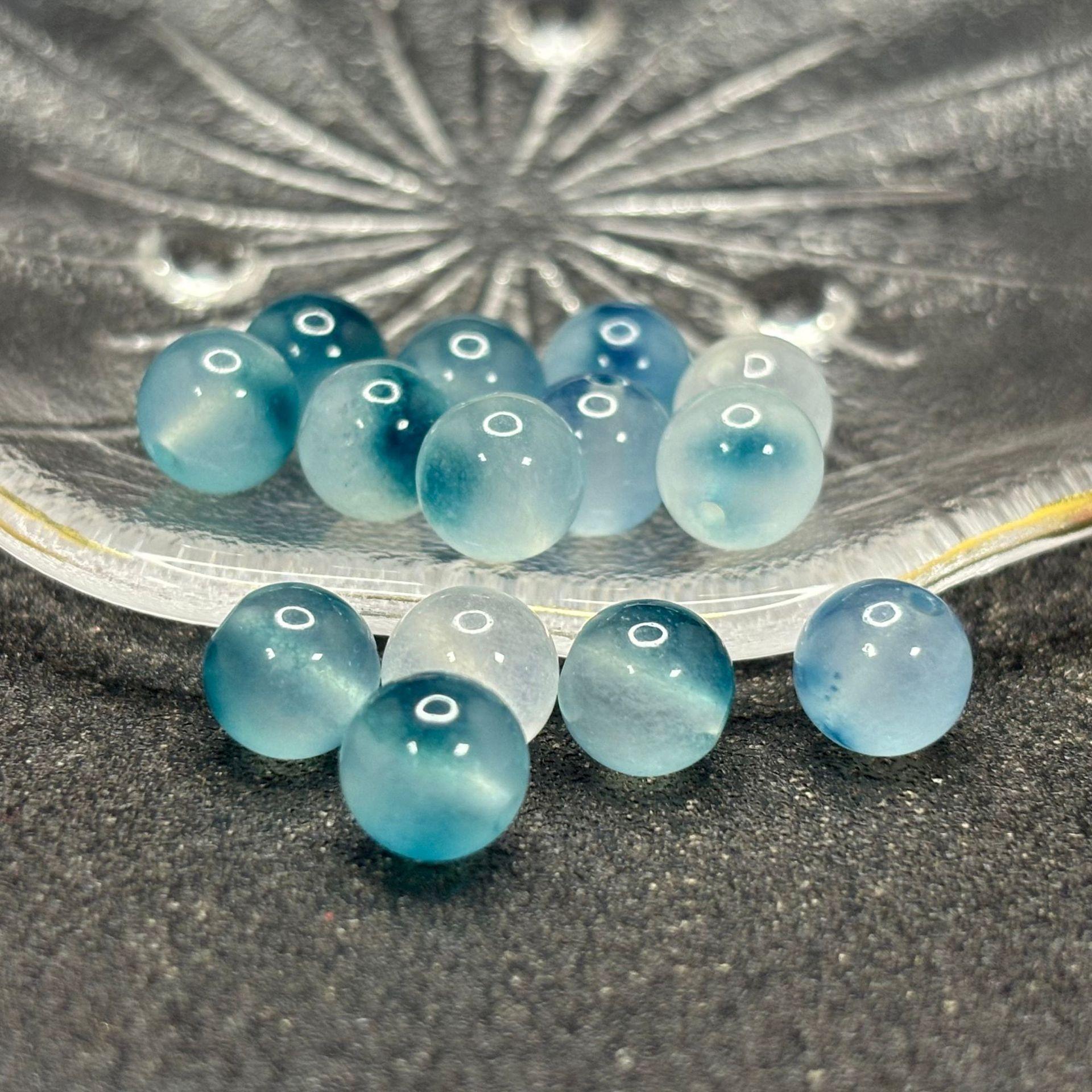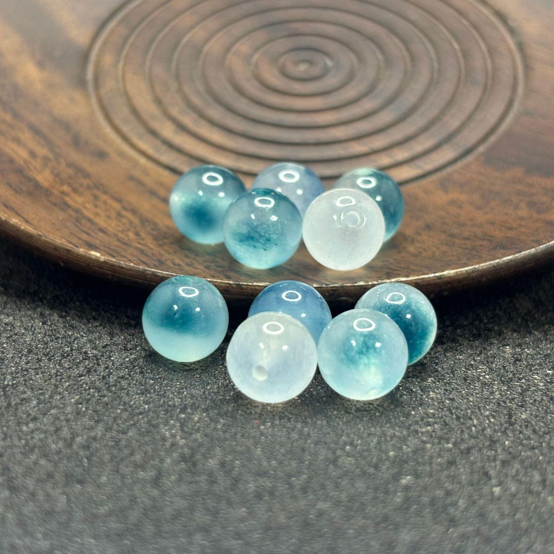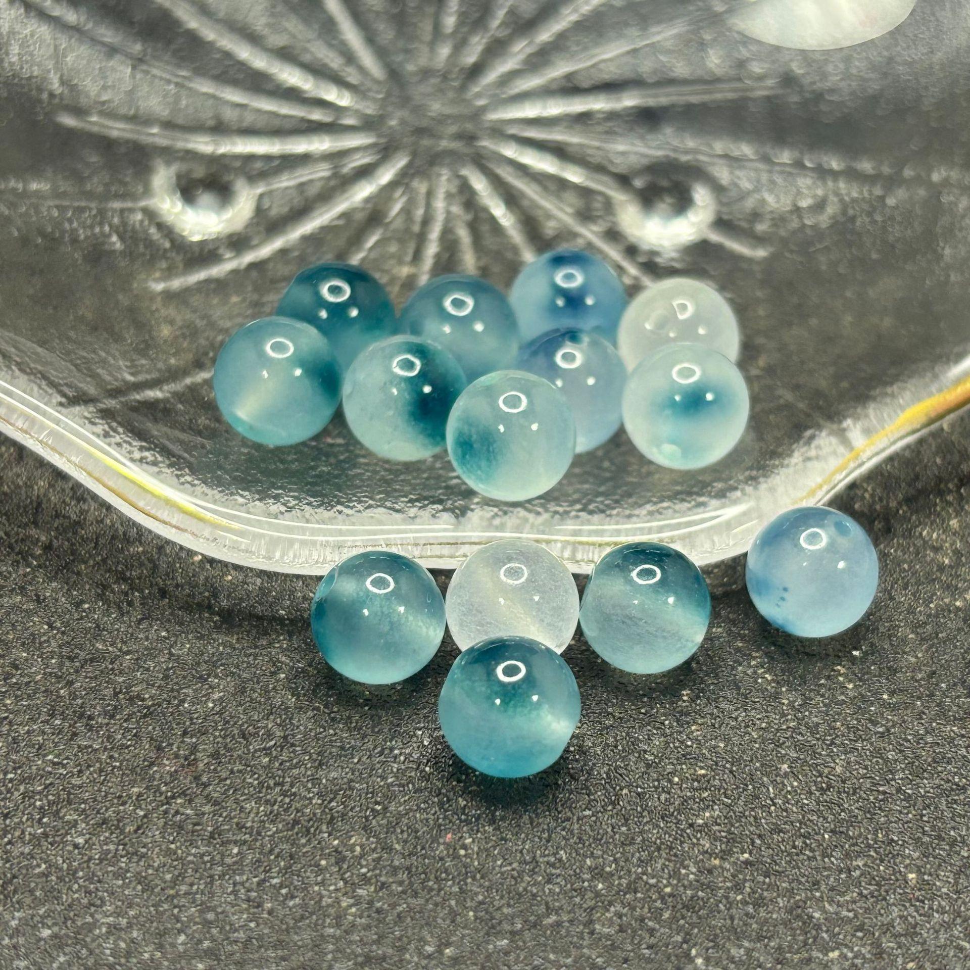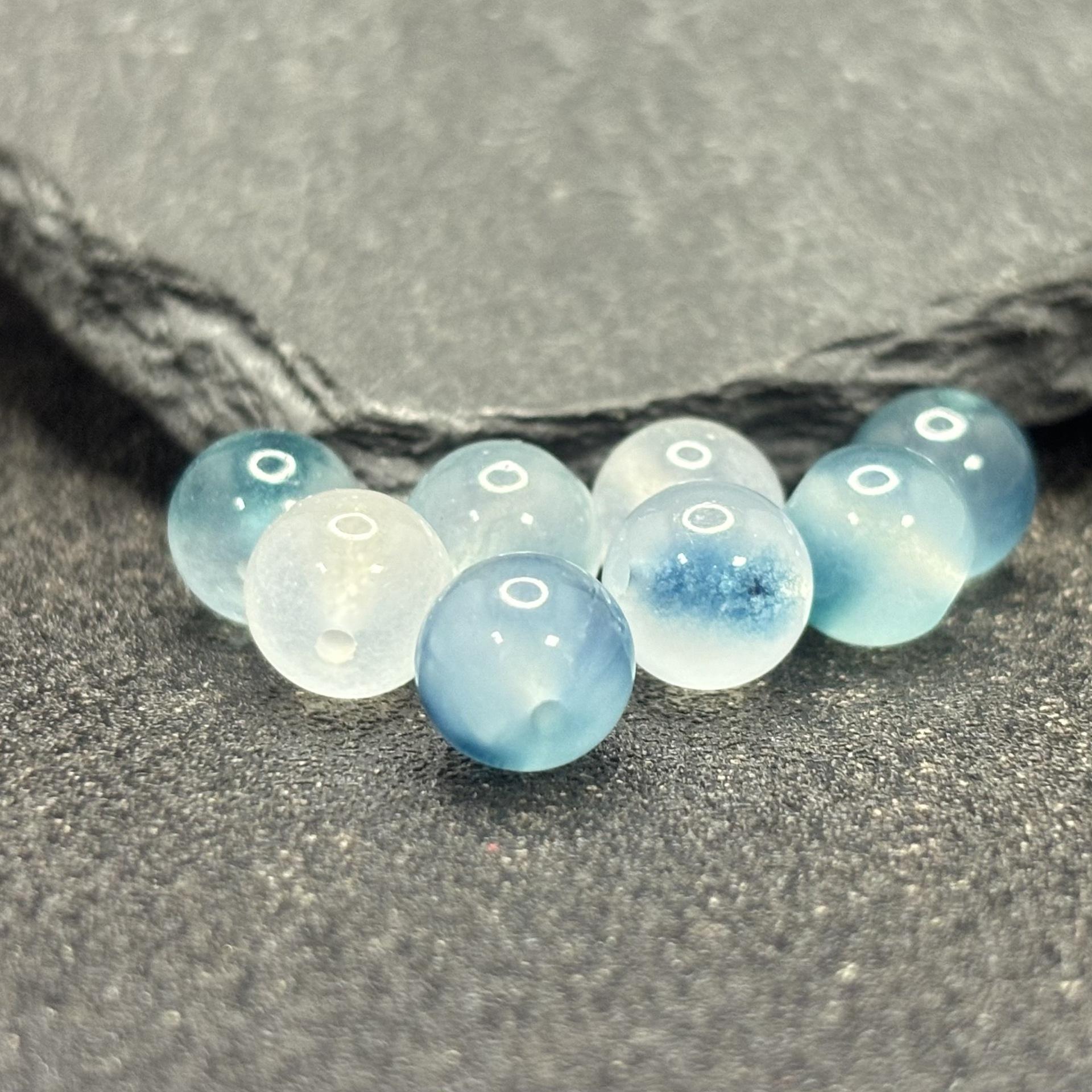 Bashan ice blue and white floating flower beads