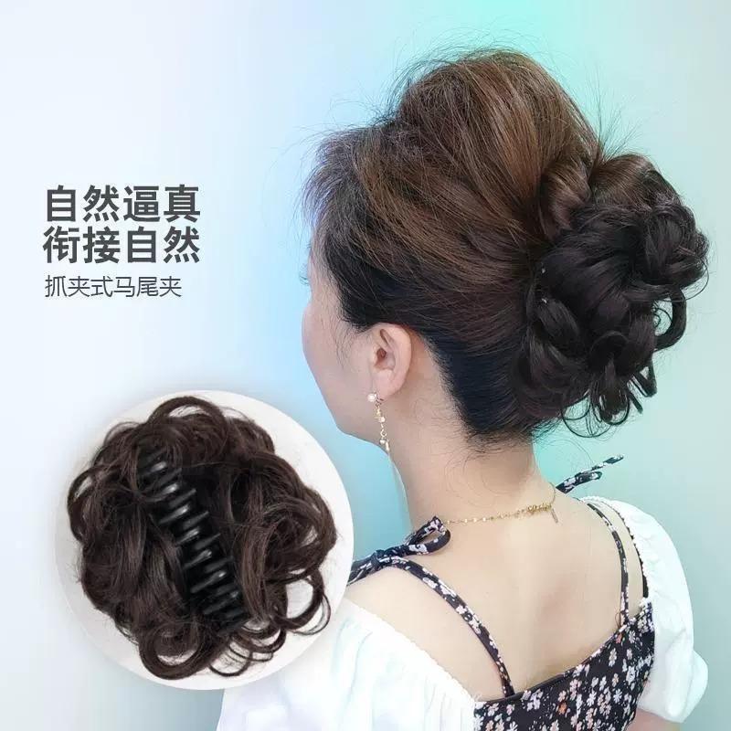 Peruca Feminina Círculo de Cabelo de Coque Prendedor Botão de Flor Preguiçoso Meio Coque Cabelo Real Fofo Natural Torcedor de Cabelo Peruca Bolsa de Cabelo