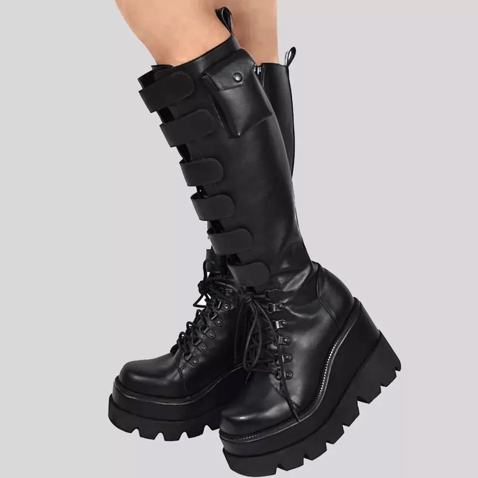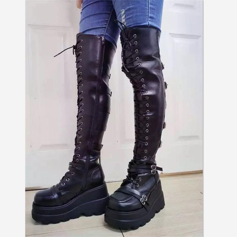 Botas de joelho de tamanho grande 2020 inverno Novas botas de cunha de cabeça redonda europeias e americanas que as mulheres desejam o comércio exterior Knight boots spot