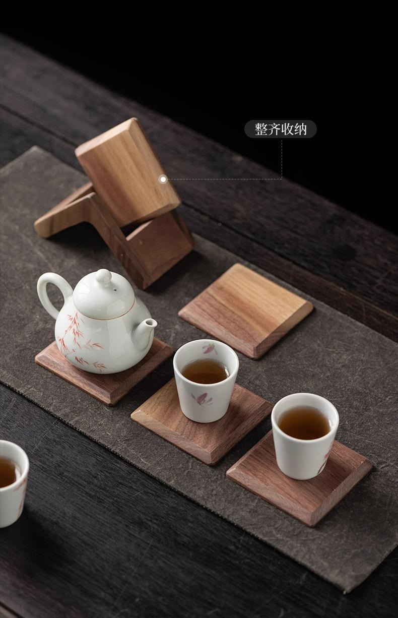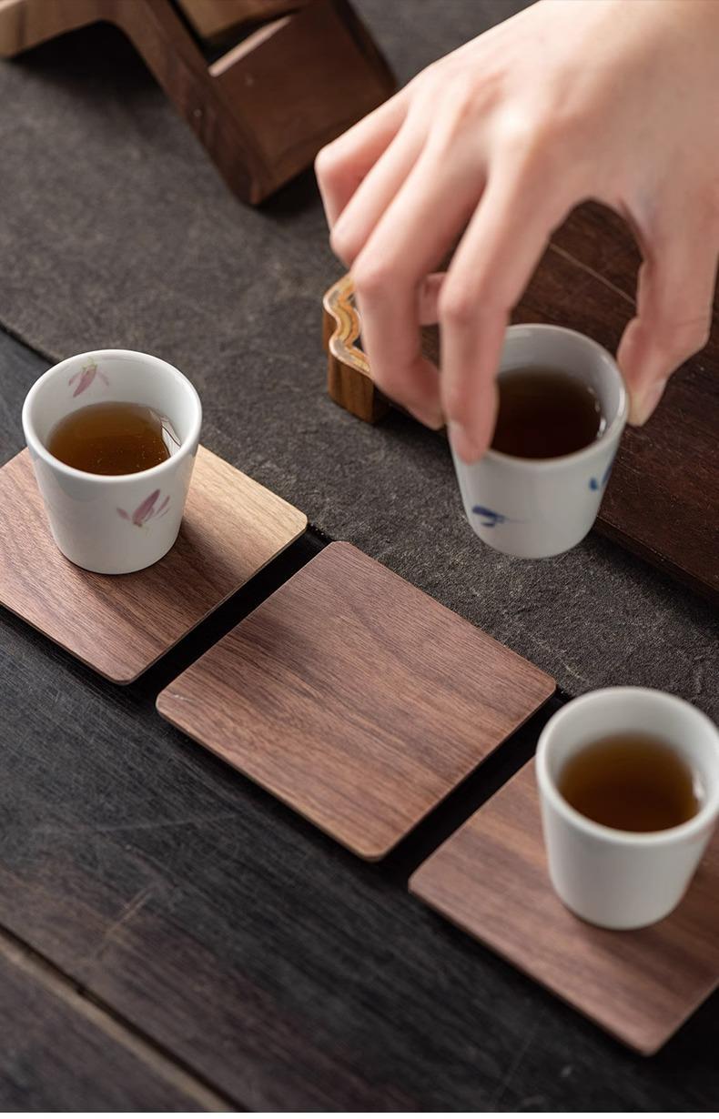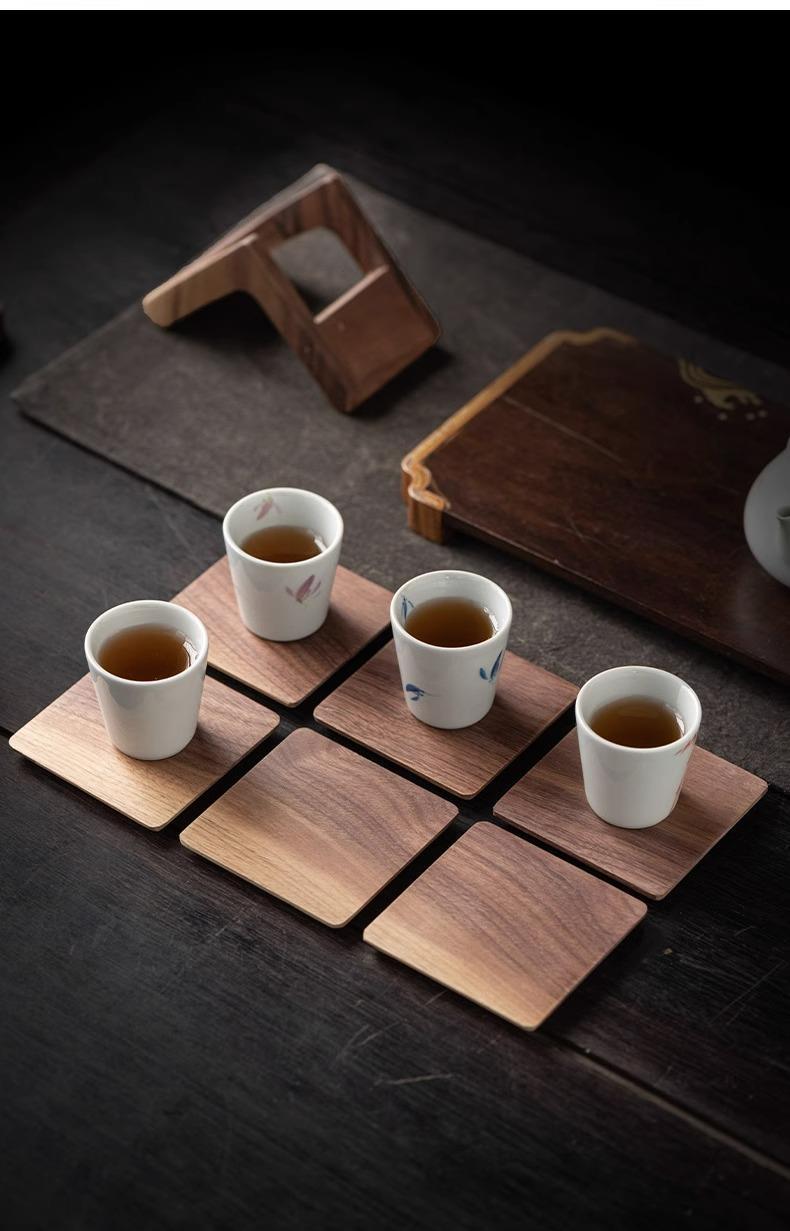 Porta-copos de Nogueira Porta-chá Copo de Vidro para Café Resistente ao Calor Anti-escaldante Armazenamento Base de Madeira Maciça para Chá