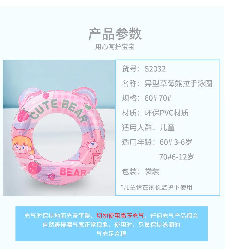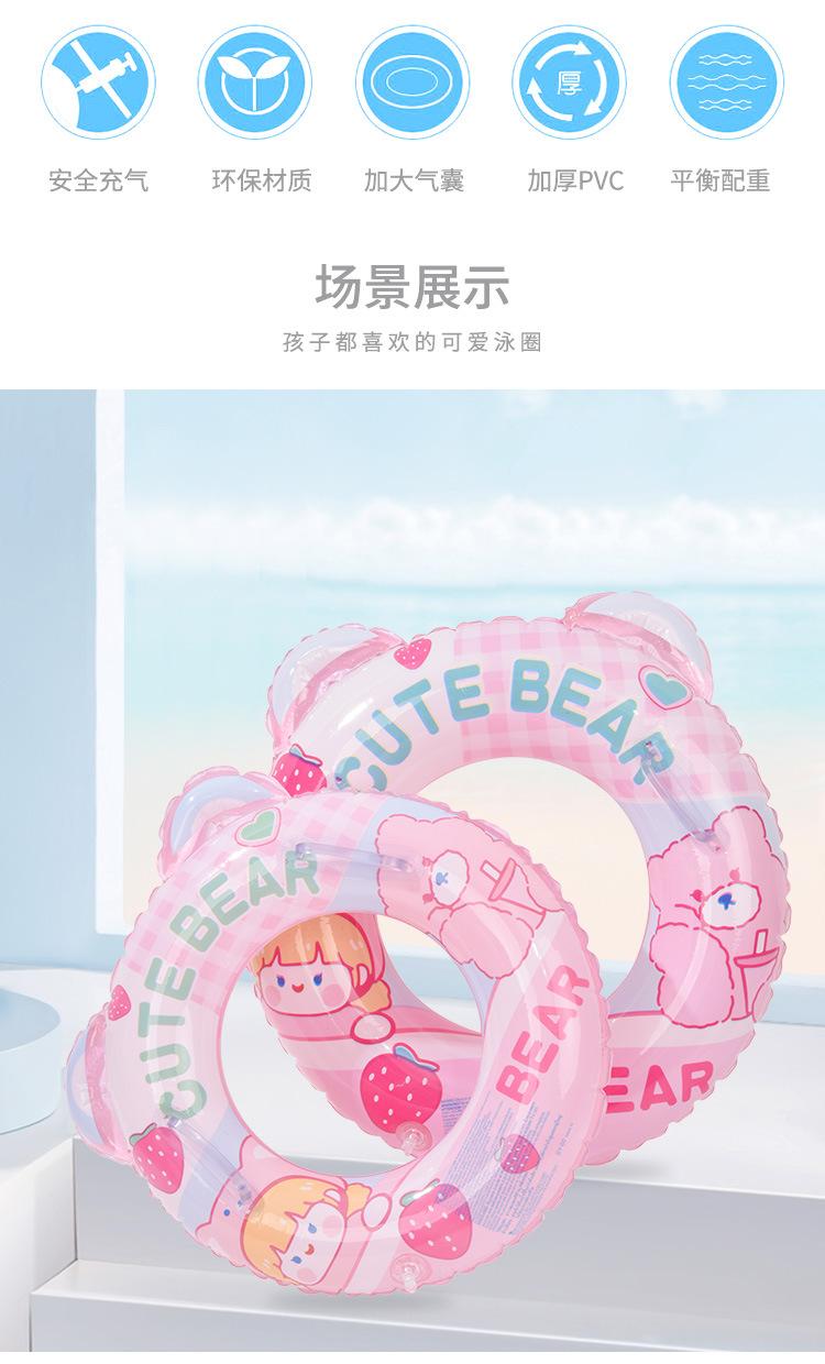 Anel de natação Anel de urso de morango infantil engrossado brinquedo inflável de água de desenho animado ao ar livre nas axilas anel de natação local atacado