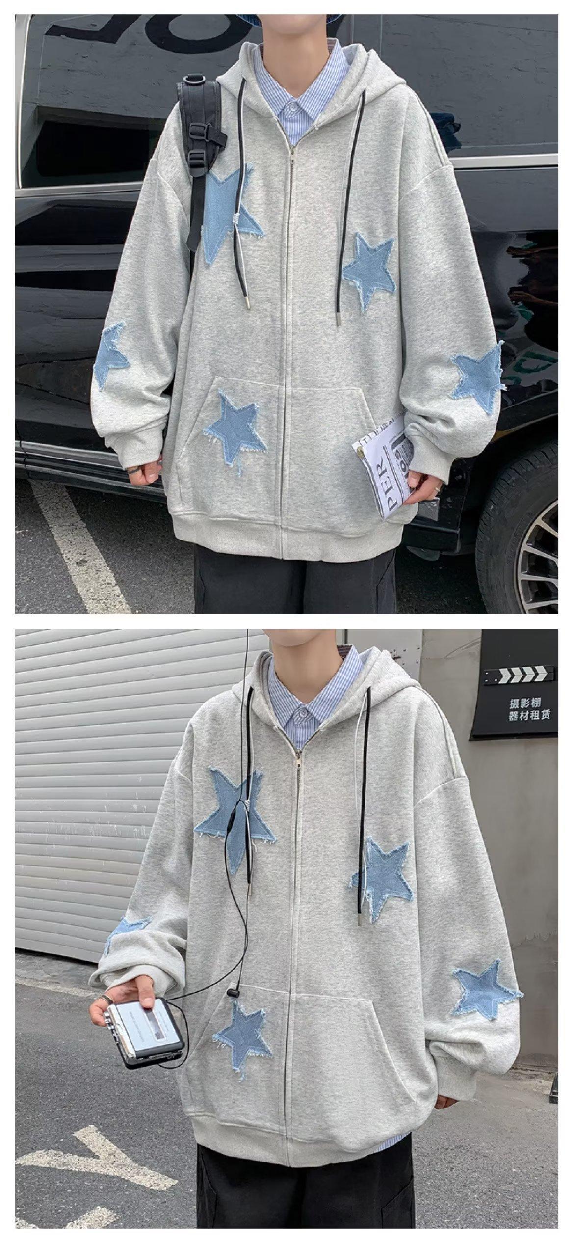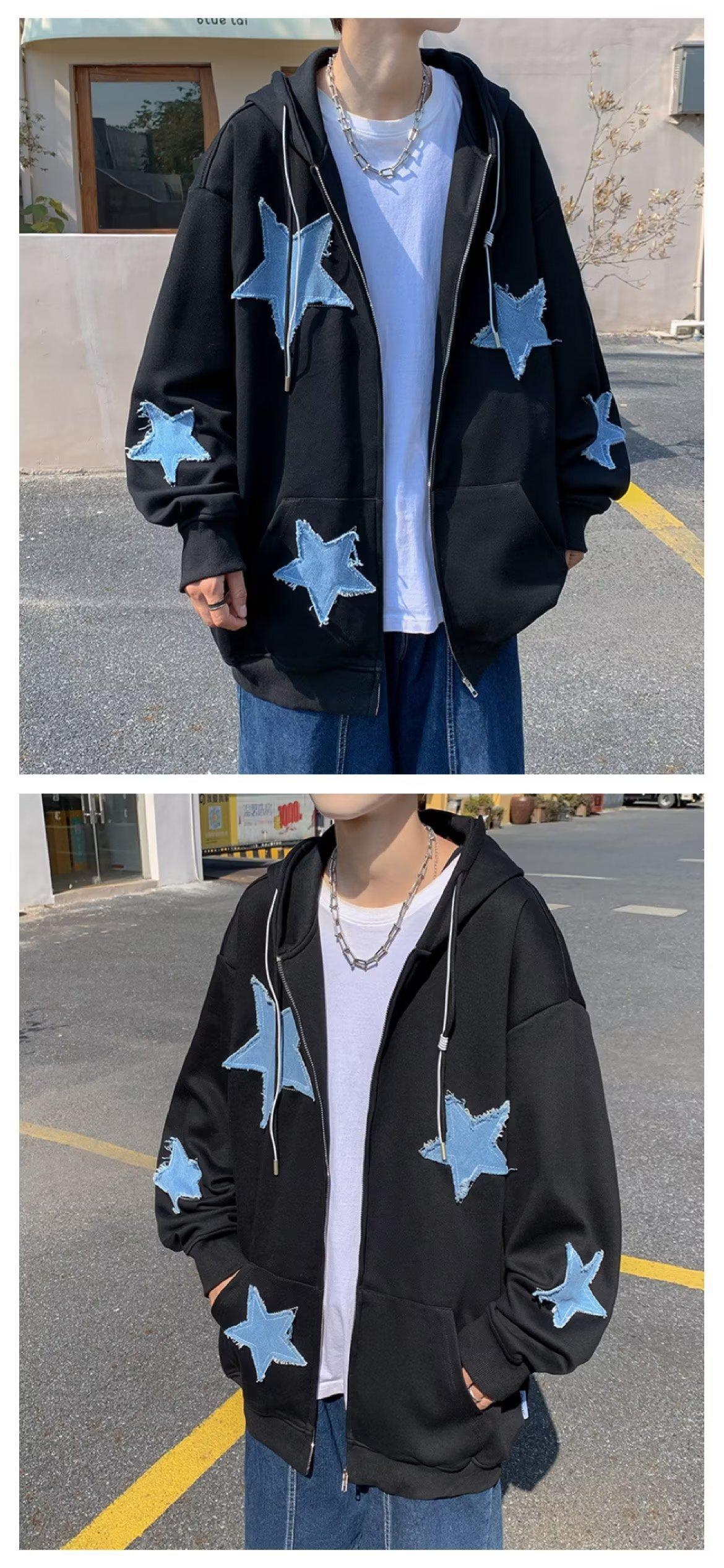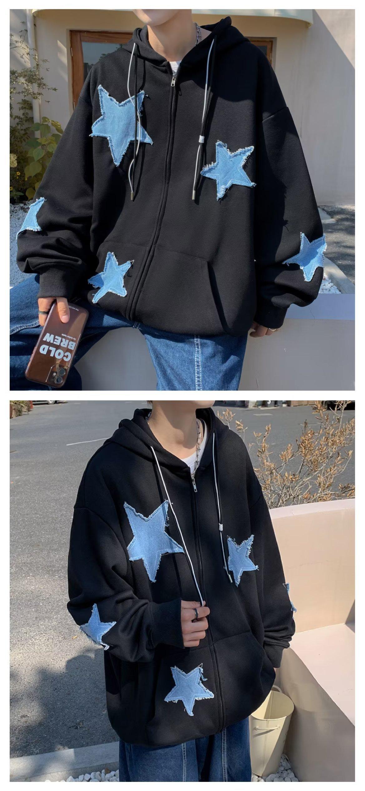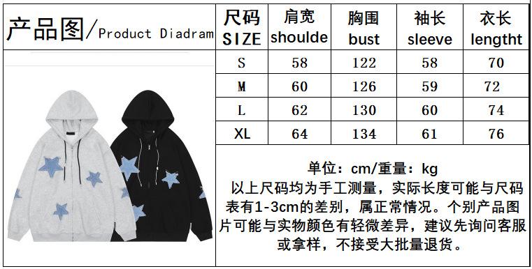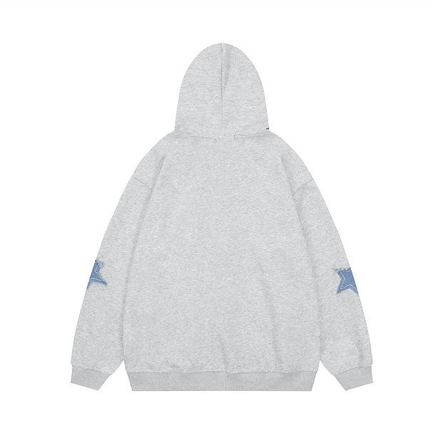 Compre Algodão Europeu e Americano retro Star Patch camisola com capuz inverno solto casual homens e mulheres casal jaqueta cardigan no atacado no Joom.pro