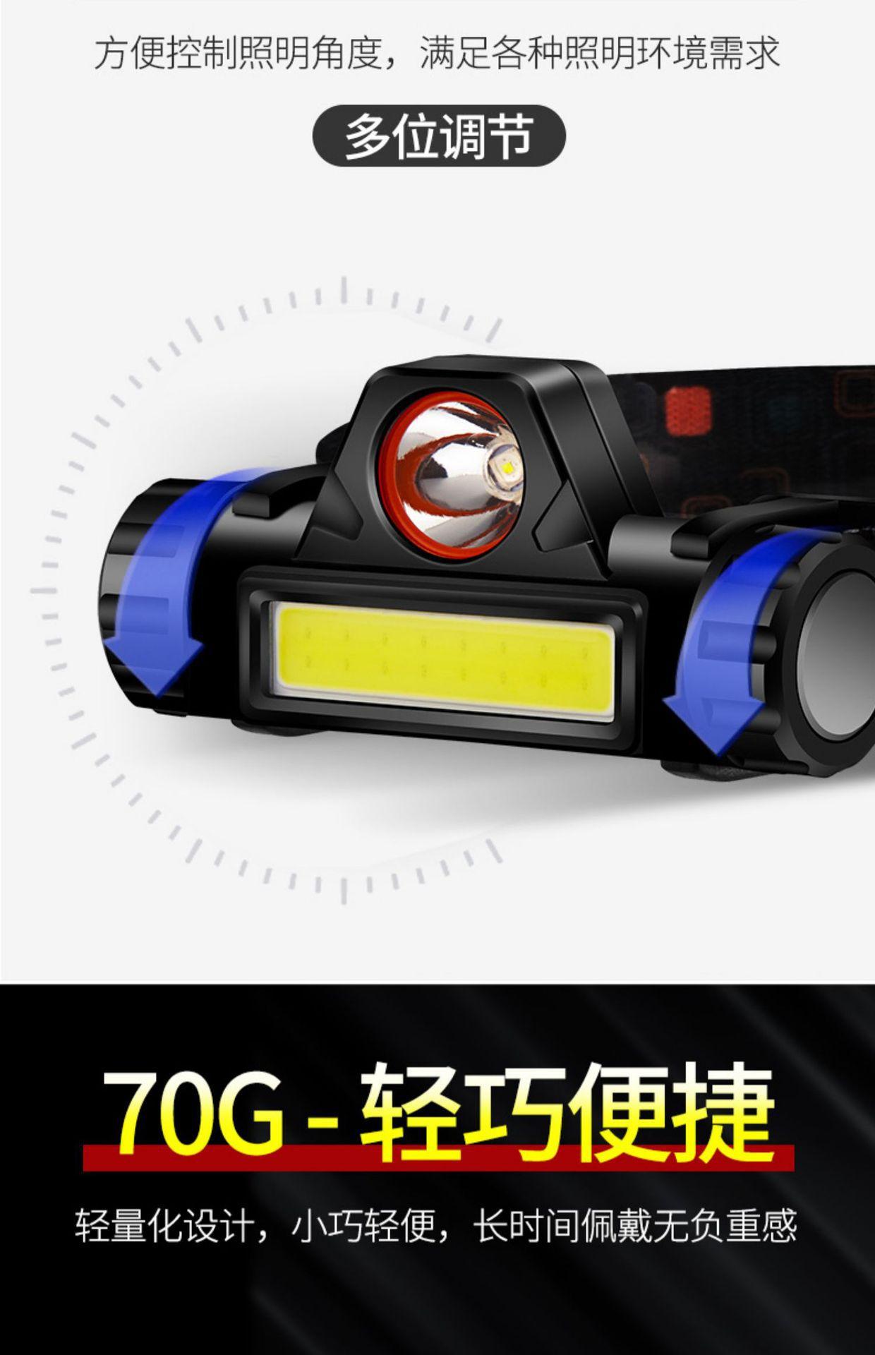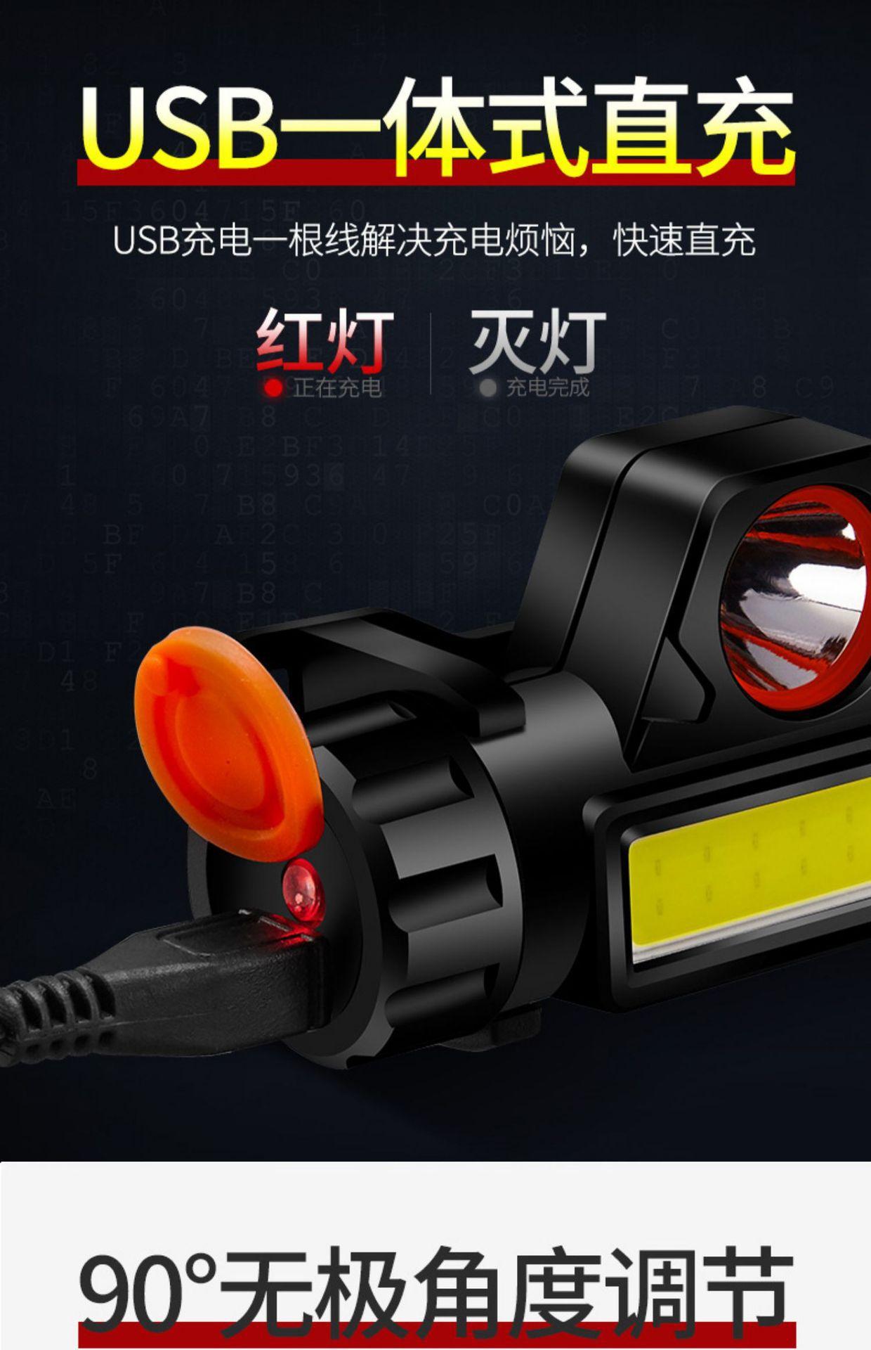 Lanterna de cabeça LED montada na cabeça de carregamento de luz forte ao ar livre Pesca noturna Super Bright Light Tamanho pequeno Lanterna de iluminação de longa vida