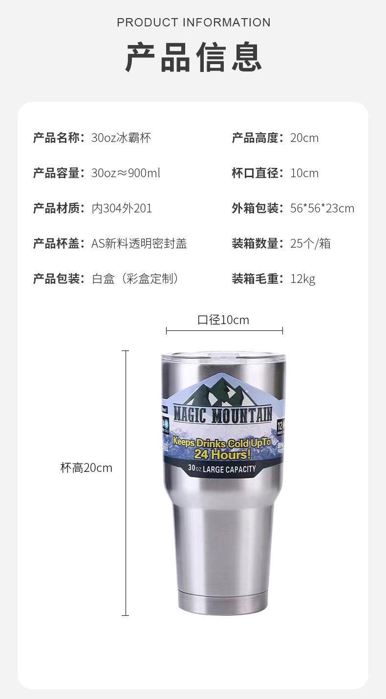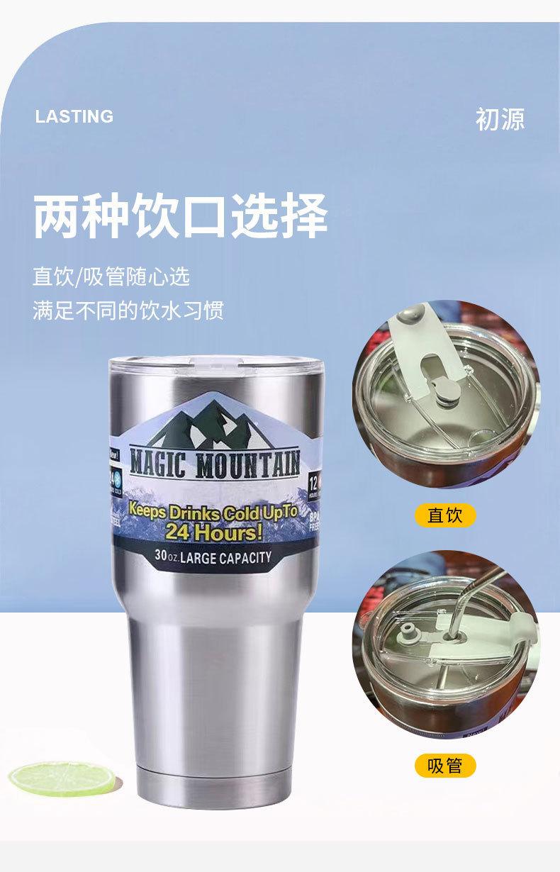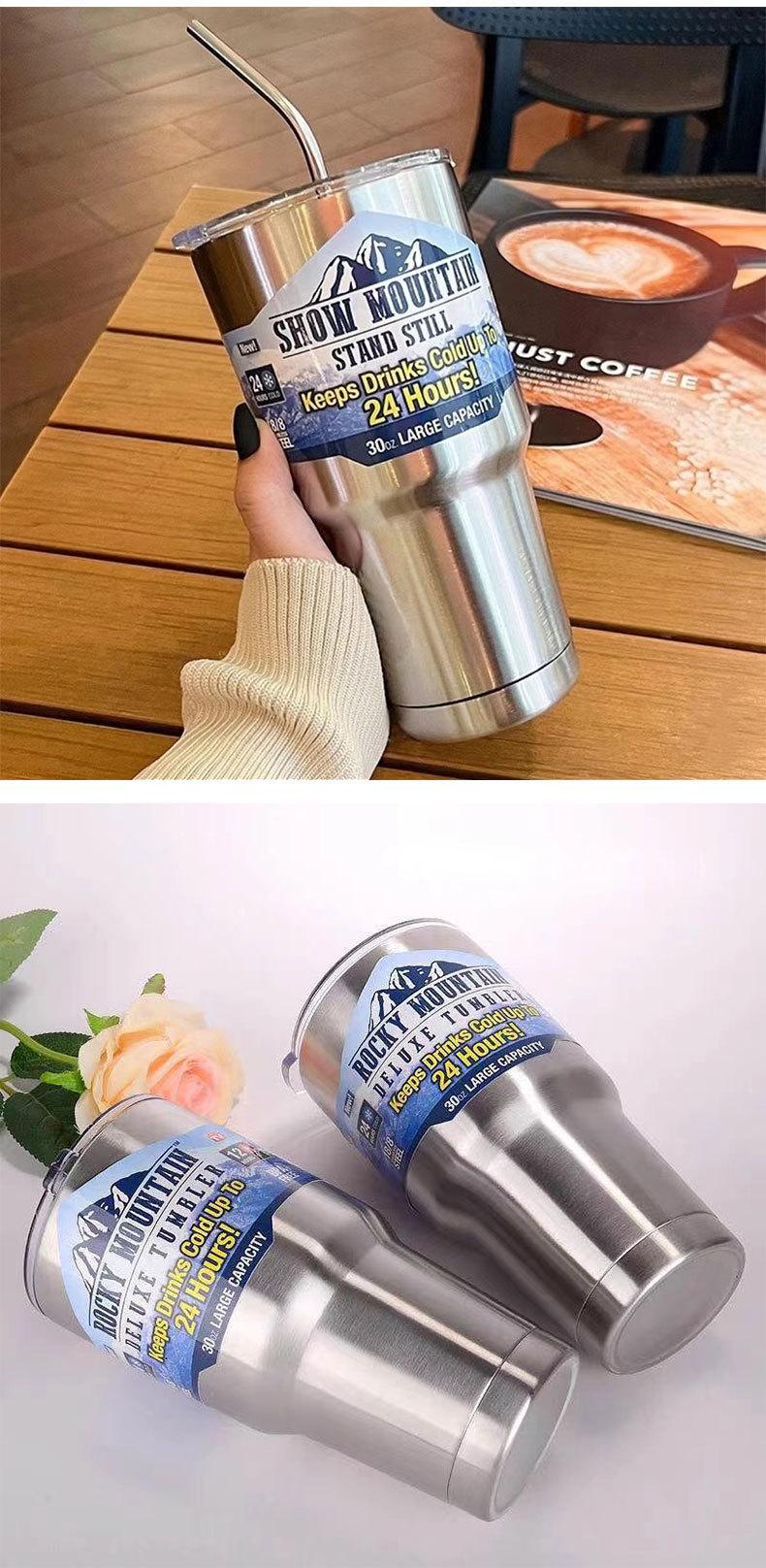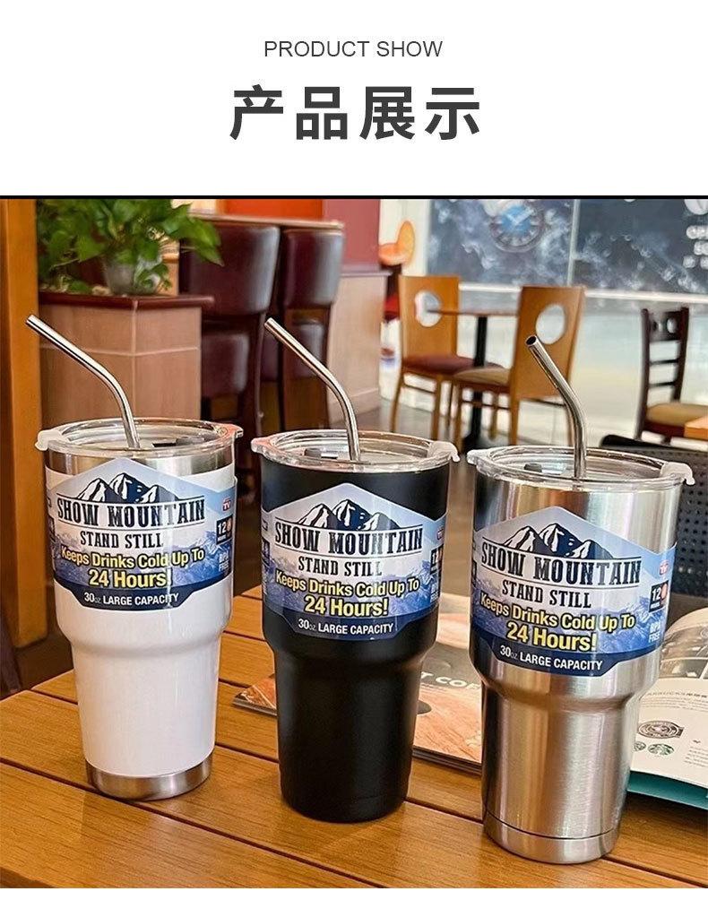 Copo de Gelo Transfronteiriço de Aço Inoxidável 304 30oz Copo Térmico Copo para Carro Carro Grande Capacidade Isolamento Térmico Copo com Canudo