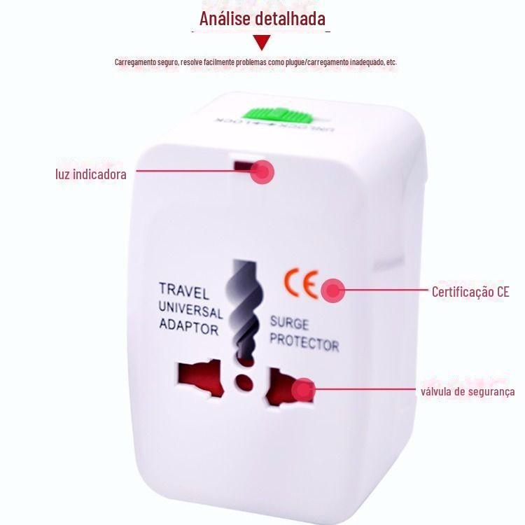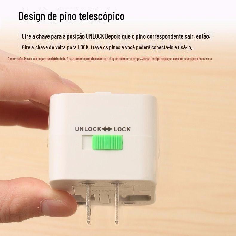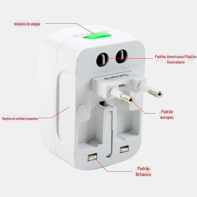 Adaptador Universal Global, Multifuncional para Viagem, Multi-Países, Tomada Padrão Britânico e Europeu, Portátil