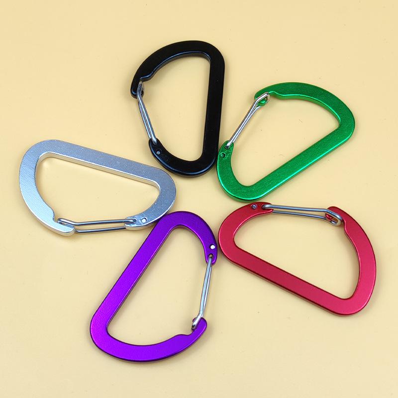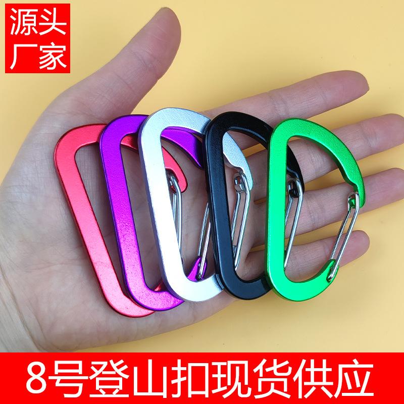 Em estoque fornecimento de liga de alumínio fivela de montanhismo No.8 D tipo fivela de fio de aço preto totalmente plana fivela de montanhismo ao ar livre fivela de suspensão de barraca