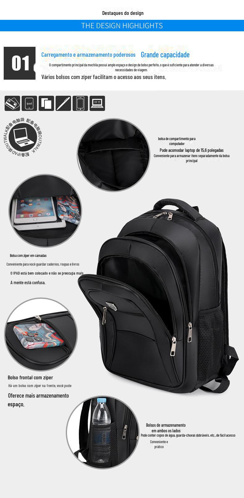 Grande capacidade de viagem de lazer mochila de estudante universitário masculino bolsa de estudo simples computador de negócios Bolsa de Moda