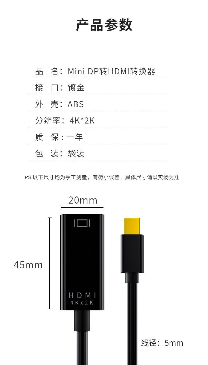 Adaptador MiniDP para HDMI 4K HD suporta computador para monitorar estação de acoplamento mini dp
