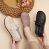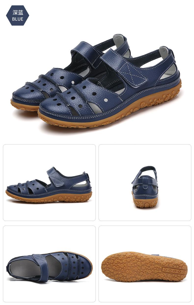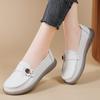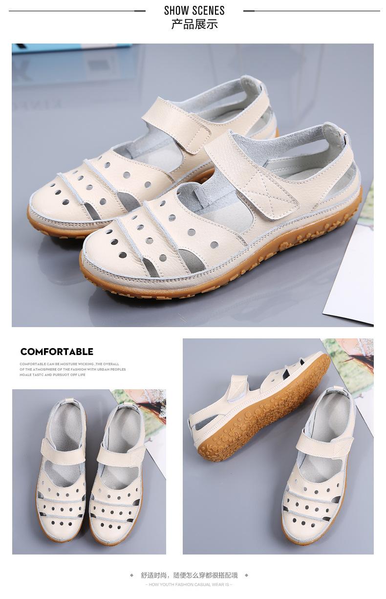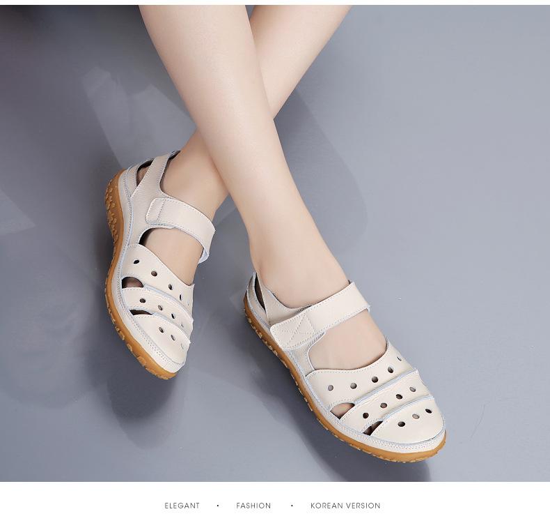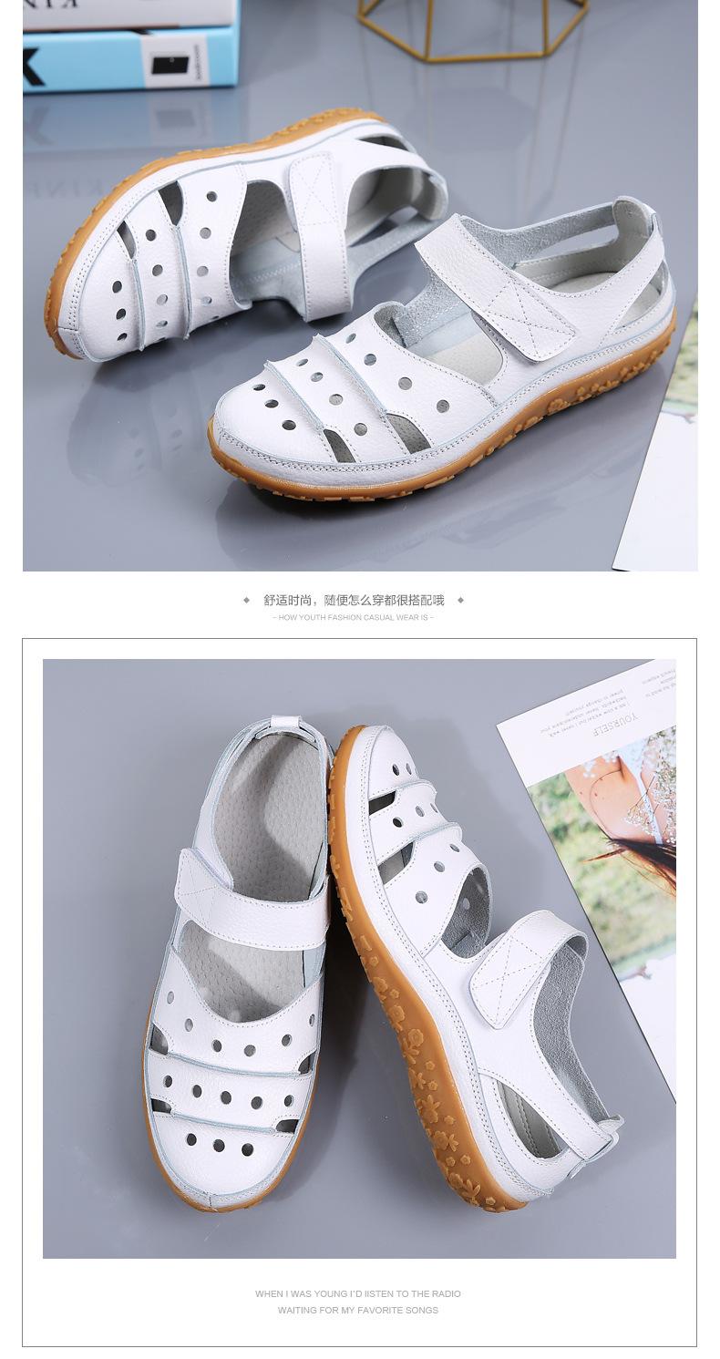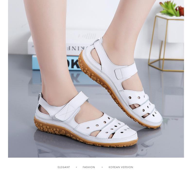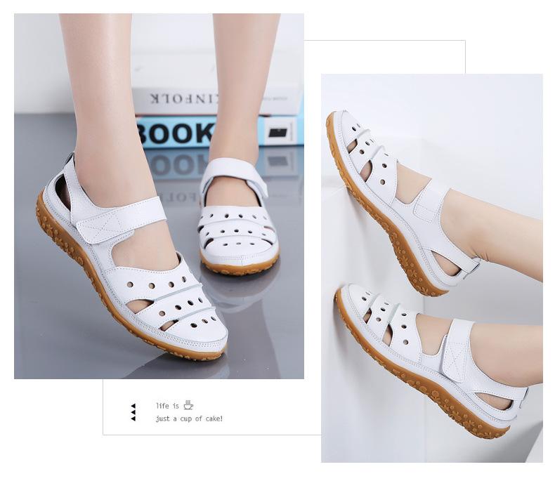 Verão 2025 Sandálias Novas Femininas Tamanho Grande Sapatos Vazados Sapatos de Couro Genuíno Sapatos para Mães Sapatos Femininos de Camada Única Respiráveis Sapatos Brancos de Enfermeira