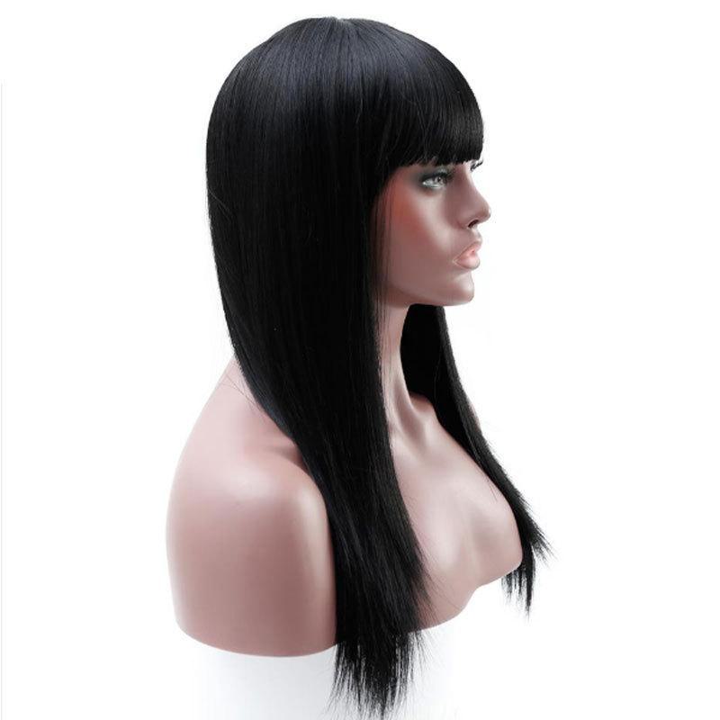 Amazon Nova Peruca de Fibra Química Peruca Europeia e Americana Cabelo Longo Liso Preto de Seda de Alta Temperatura Fibra Química Perucas de Capacete