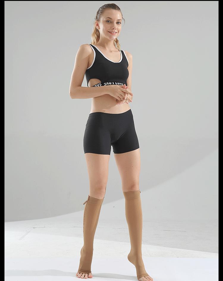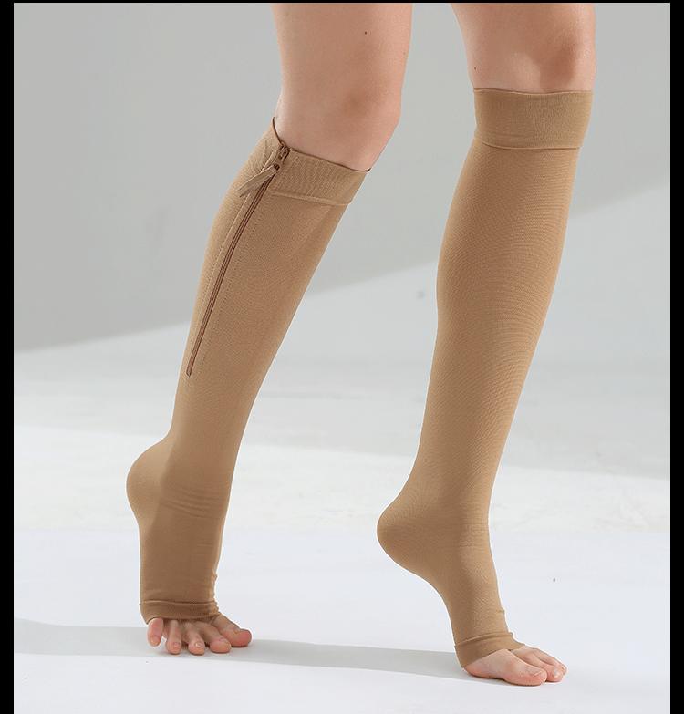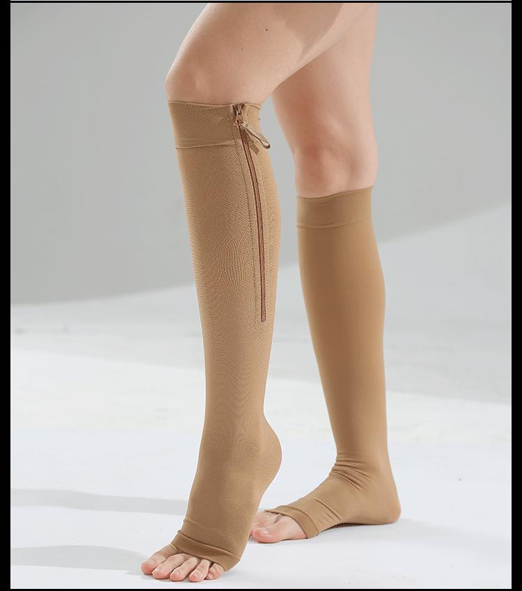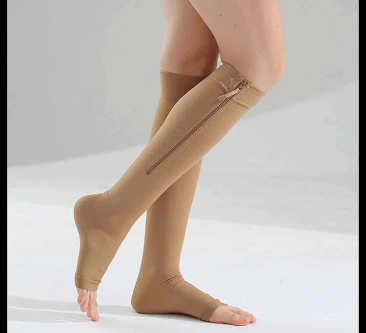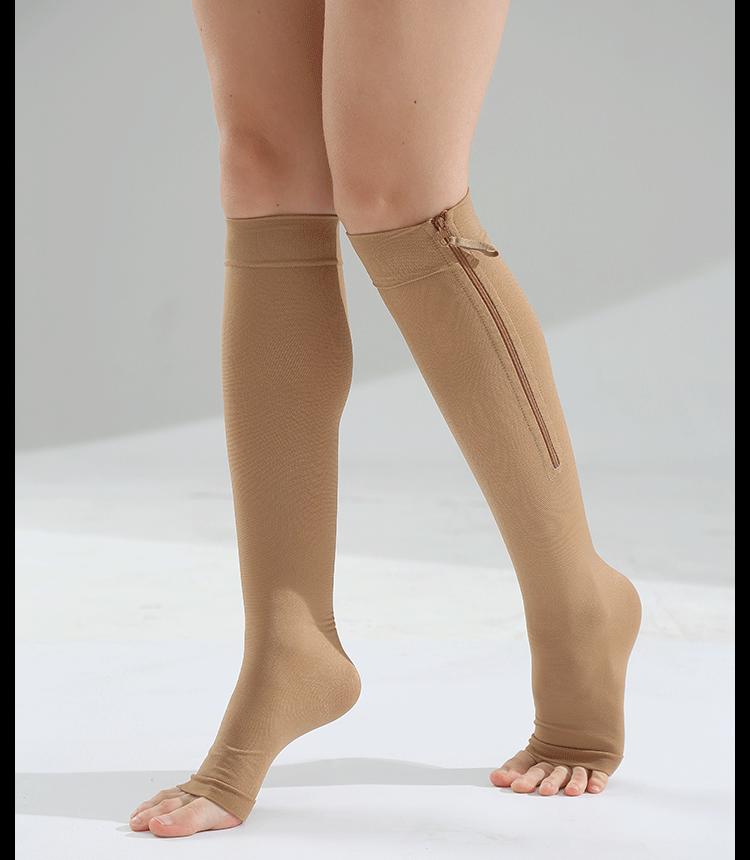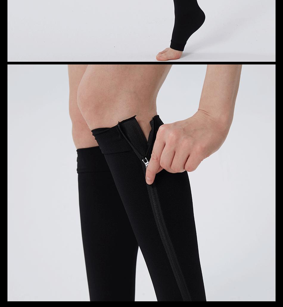 [Estilo do produto]: Meias com zíper aberto no meio do cano