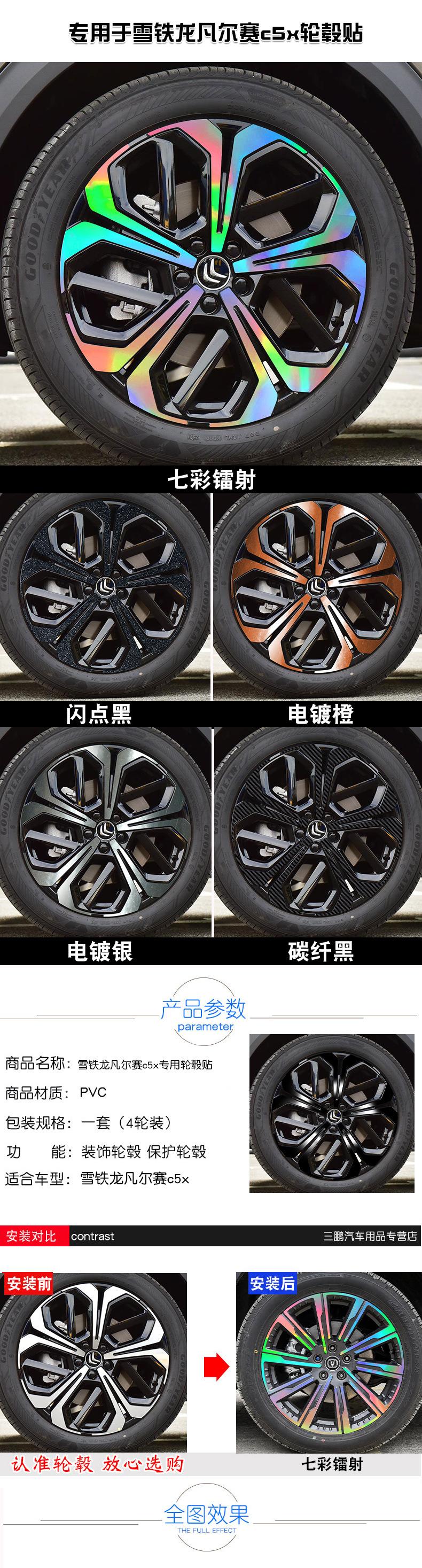 Adequado para Citroen Versailles C5X adesivos de cubo de roda modificados adesivos decorativos de fibra de carbono adesivos de carro adesivos de laser coloridos refletivos