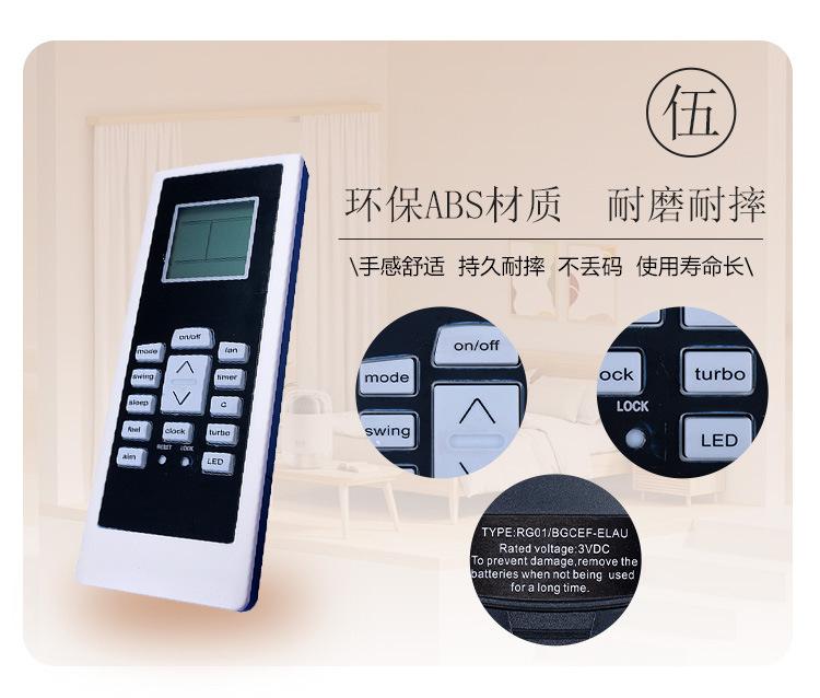 O novo controle remoto em inglês RG01 / BGCEF-ELAU é adequado para o fornecimento transfronteiriço de controle remoto de ar condicionado Electrolux