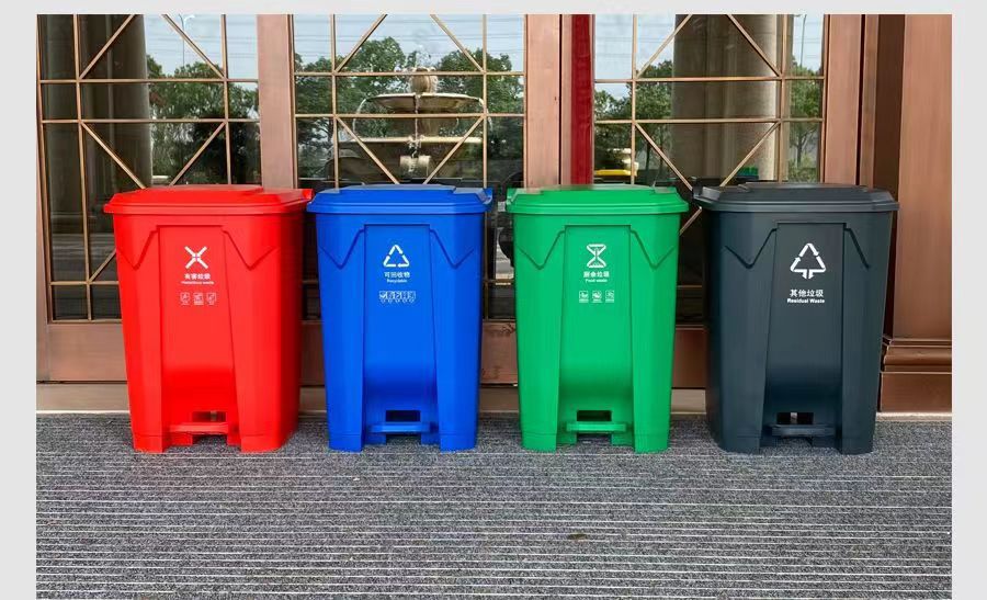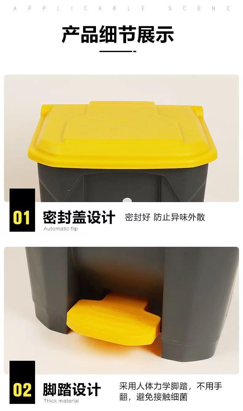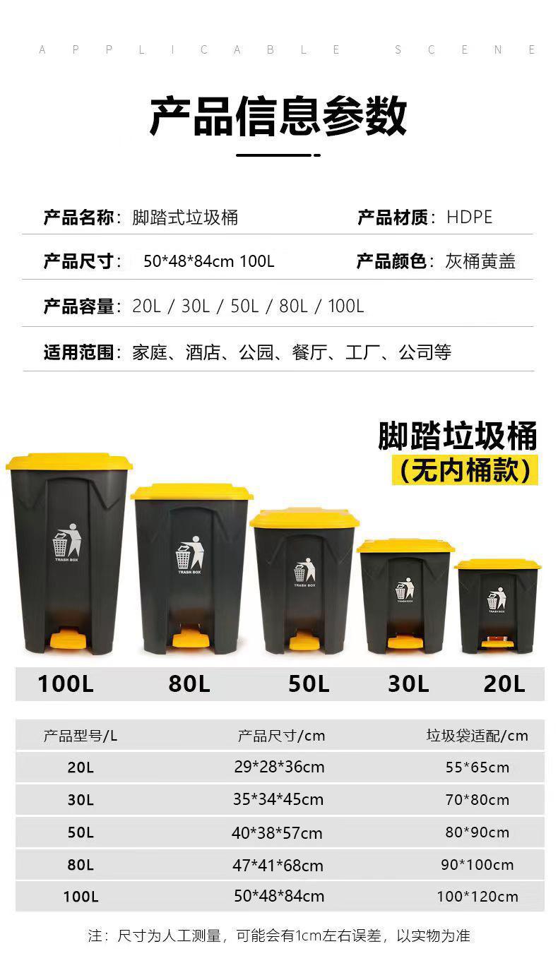 Lixeira de pedal espessada de 50 litros com tampa Lixeira quadrada doméstica de cozinha classificada ao ar livre comercial de grande capacidade