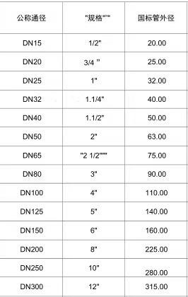 DN15 20 25 32 40 50 65 80 100 125 150 200 250 300