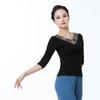 Roupa de dança bordada de uma peça, renda, dança quadrada, top único, roupa de prática básica com fenda, tamanho grande, top feminino