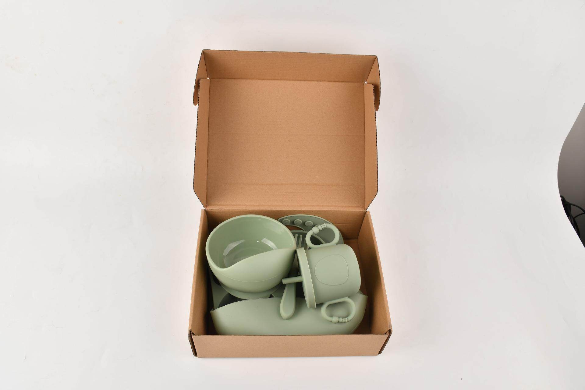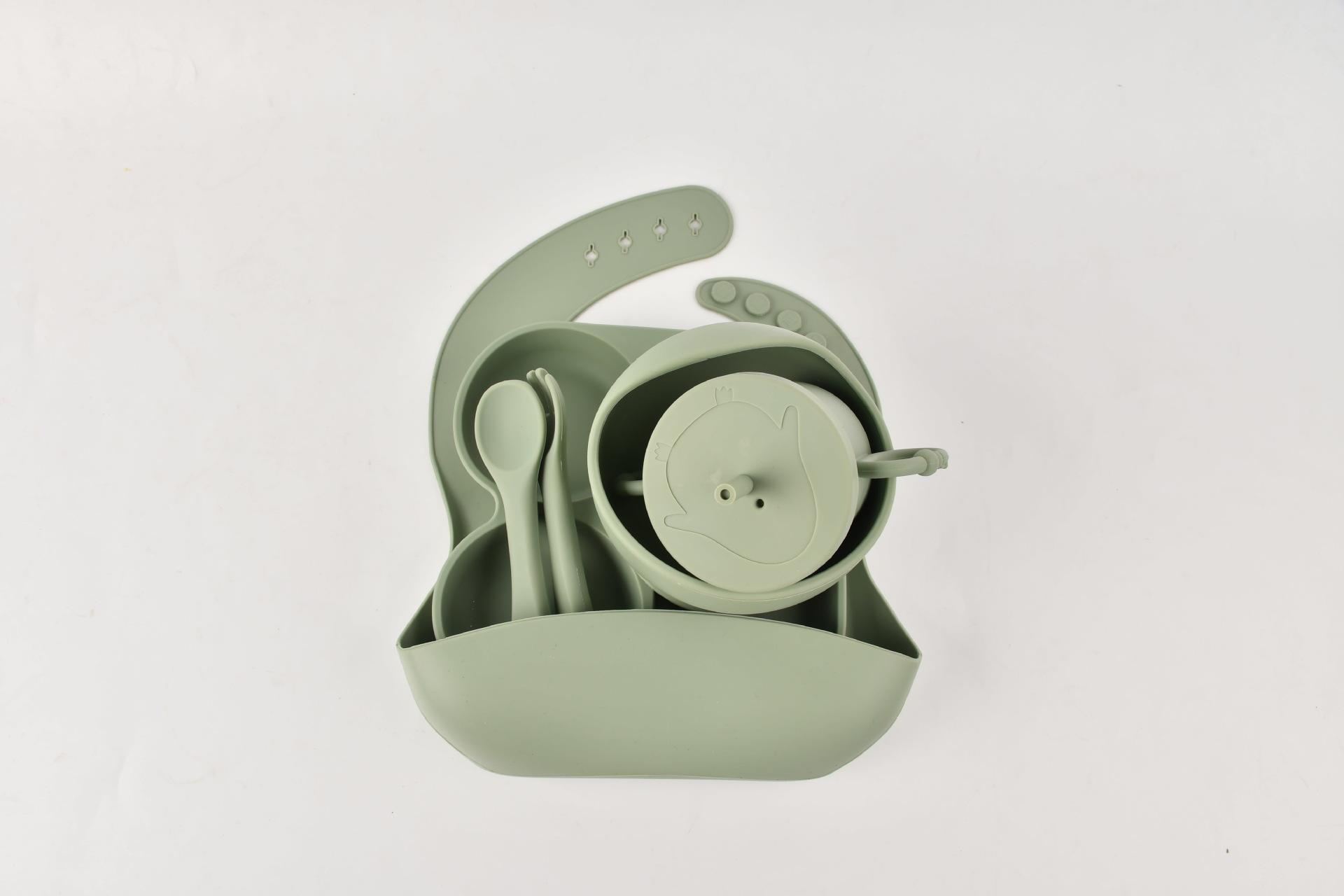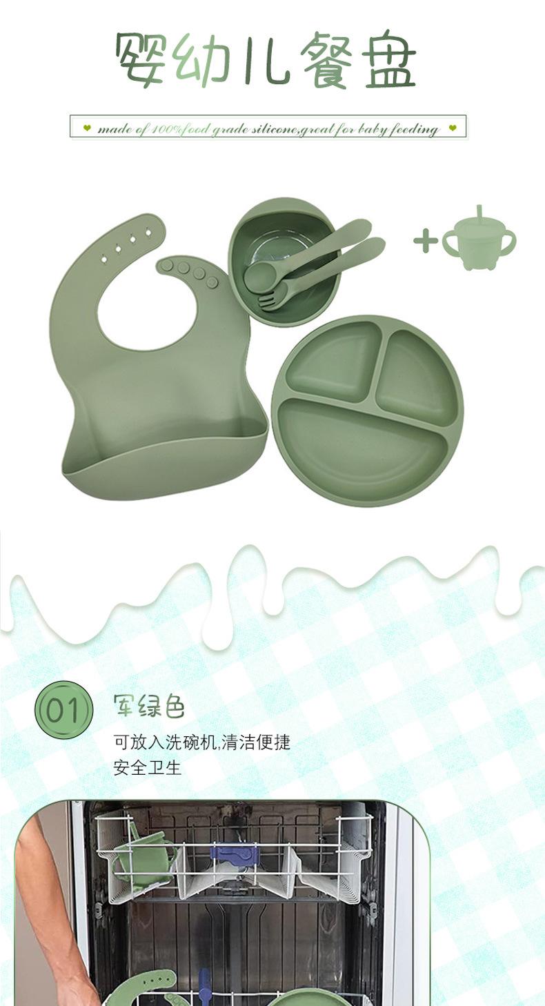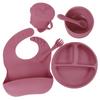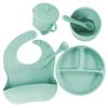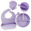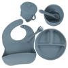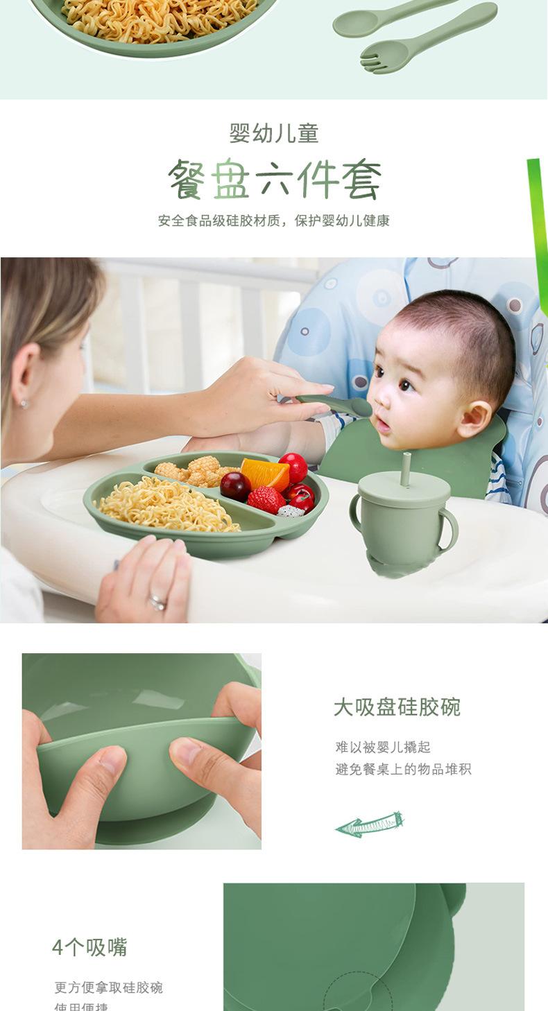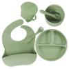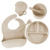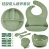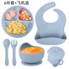 Prato de jantar de silicone complementar para crianças transfronteiriças tigela prato de jantar complementar para bebê rosto sorridente seis peças de alimentação de mãe para filho talheres atacado