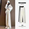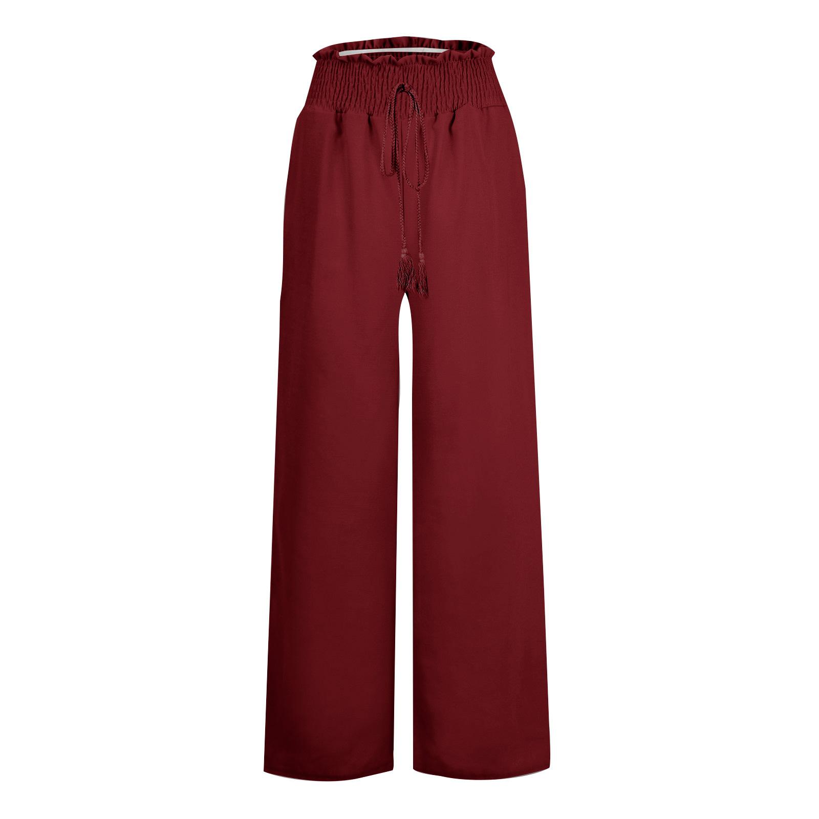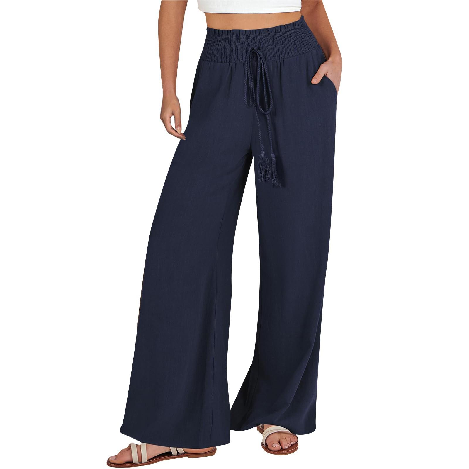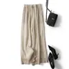 Calças largas de linho para mulheres populares europeias e americanas casuais soltas cintura alta com cordão calças casuais largas casuais com bolsos