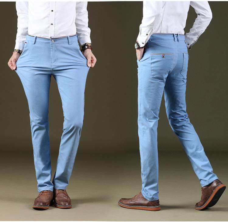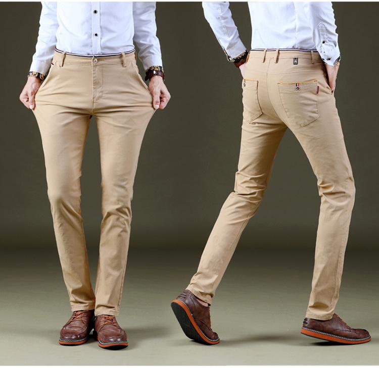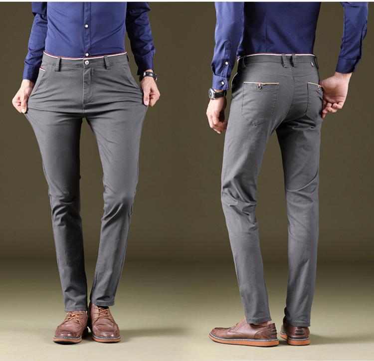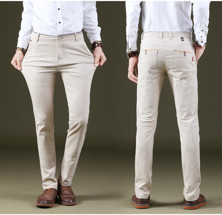 Calças Casuais Masculinas Elásticas de Perna Reta Estilo Coreano Versátil Moda Todo-Algodão Lavado Confortável Ajuste Regular