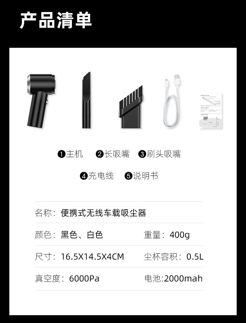 Nova pistola portátil 6000PA mini aspirador de pó de carro portátil para carro USB de carregamento sem fio carro doméstico molhado e seco aspirador de pêlos de gato e cachorro