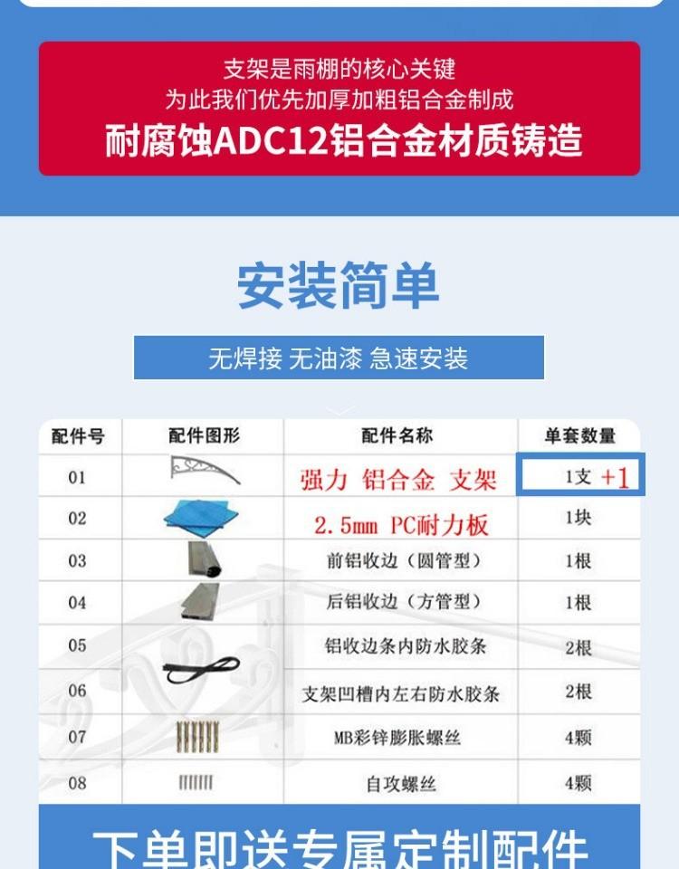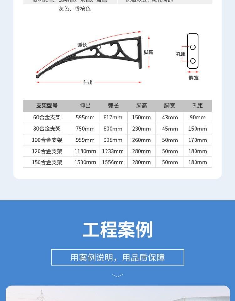 Aluminum alloy awning extending 60*80cm against the wall, complete set with two brackets