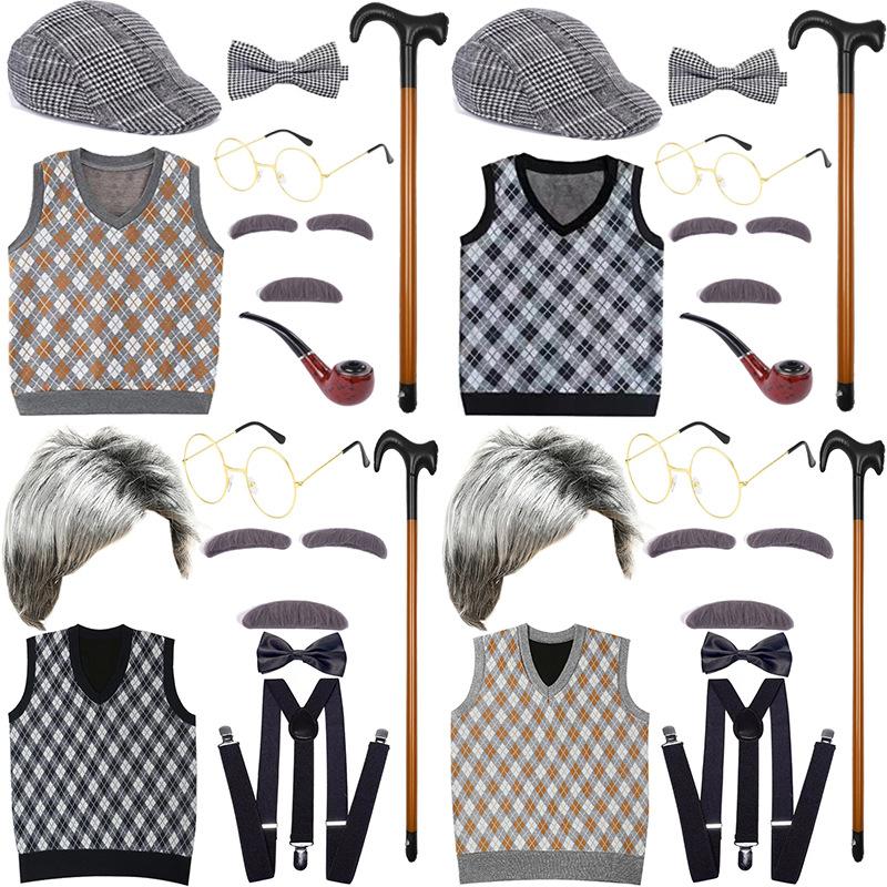 Halloween Crianças Vovô Vovó COS Peruca Festa Velho Colete Peruca Barba Velha Senhora Vestir-se