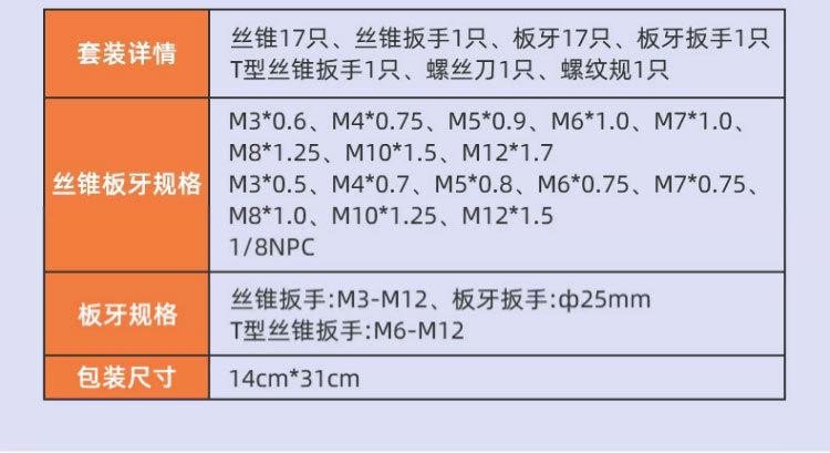 5pc tap (3.4.5.6)+ M3-12 simple tap wrench carbon steel OPP