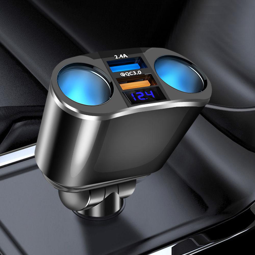 Adaptador Divisor de Acendedor de Cigarro de Carro com Saída Dupla, Carregador de Carro com Display Digital para Carregamento Rápido