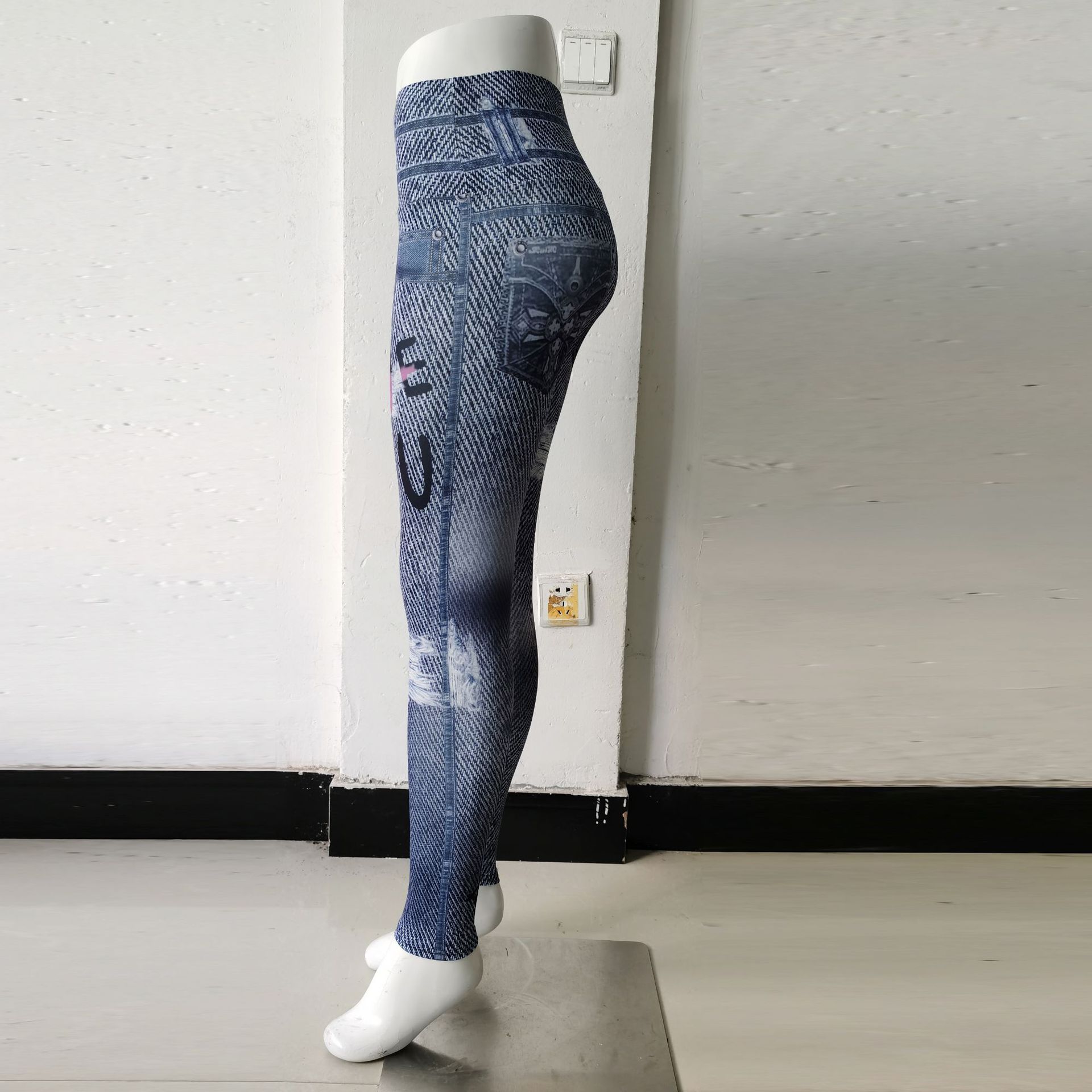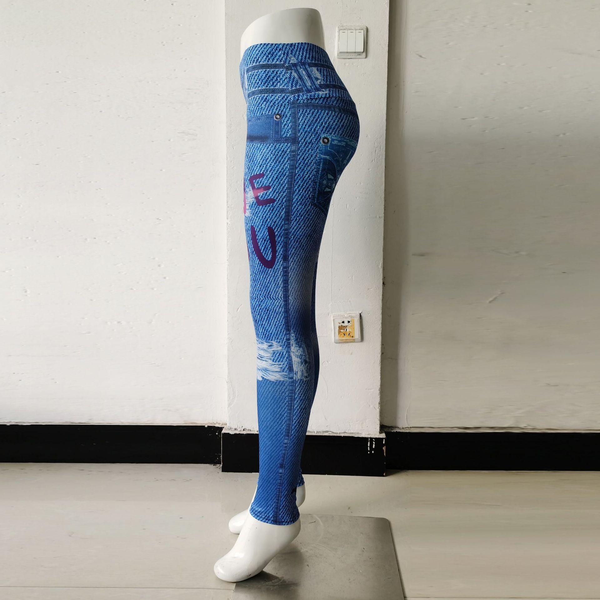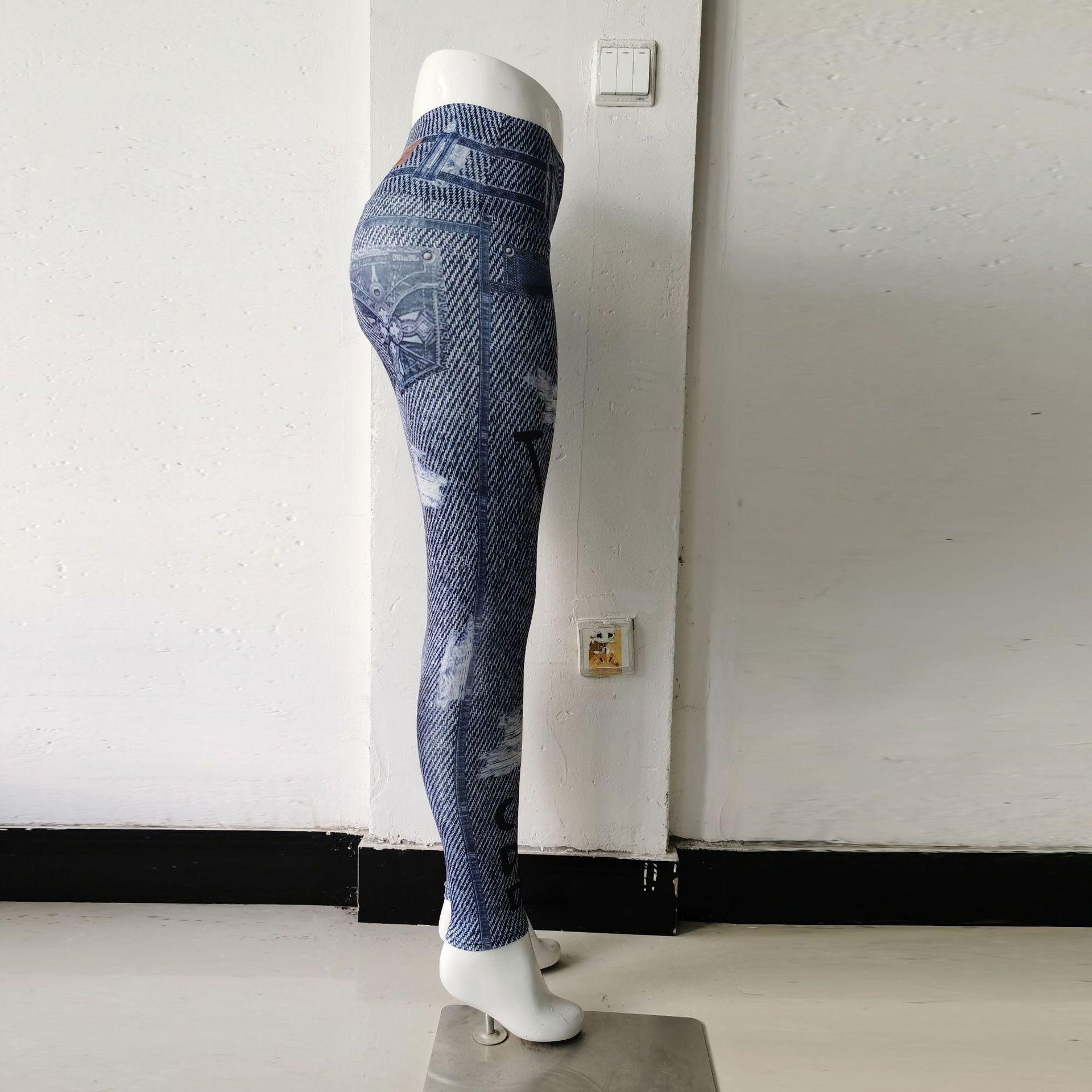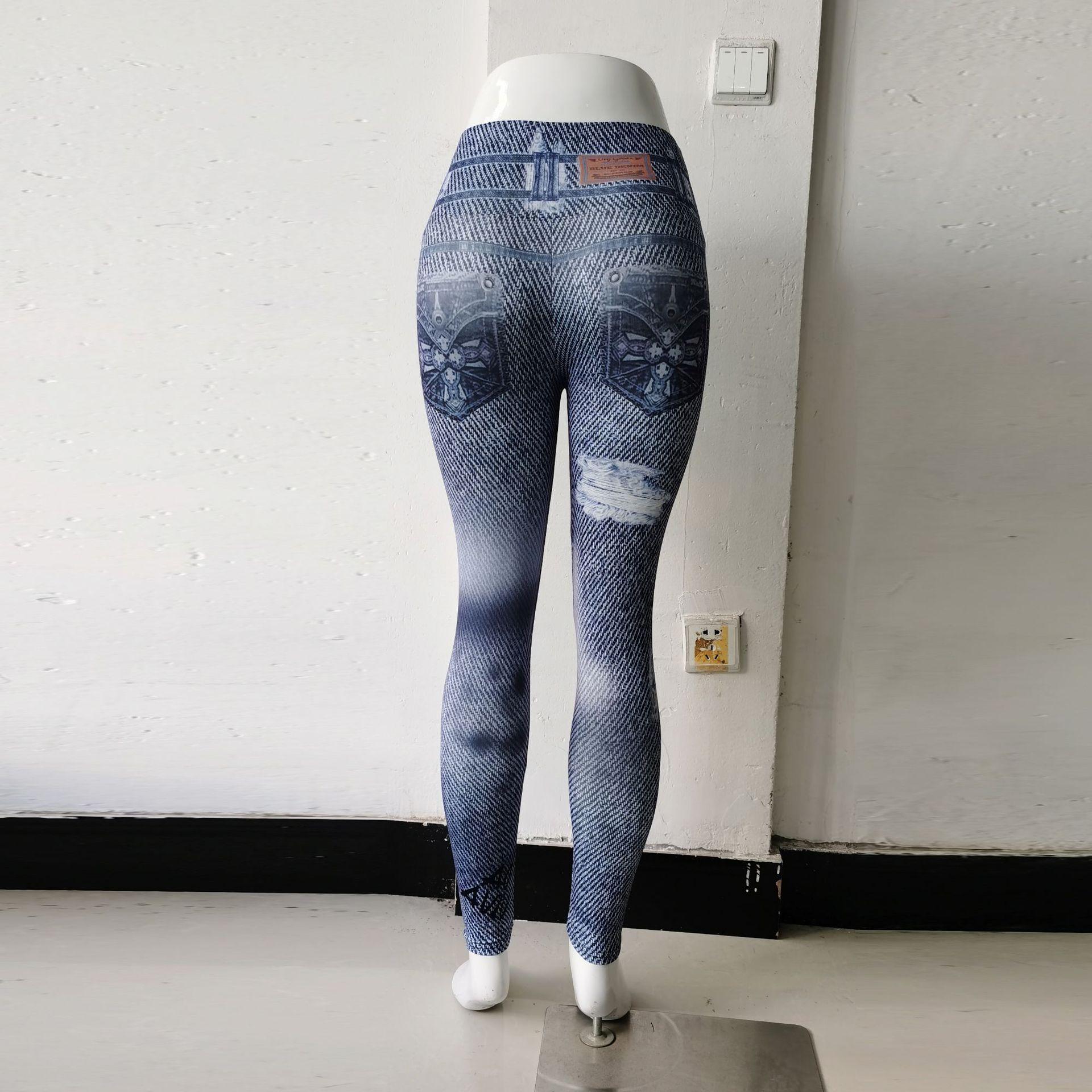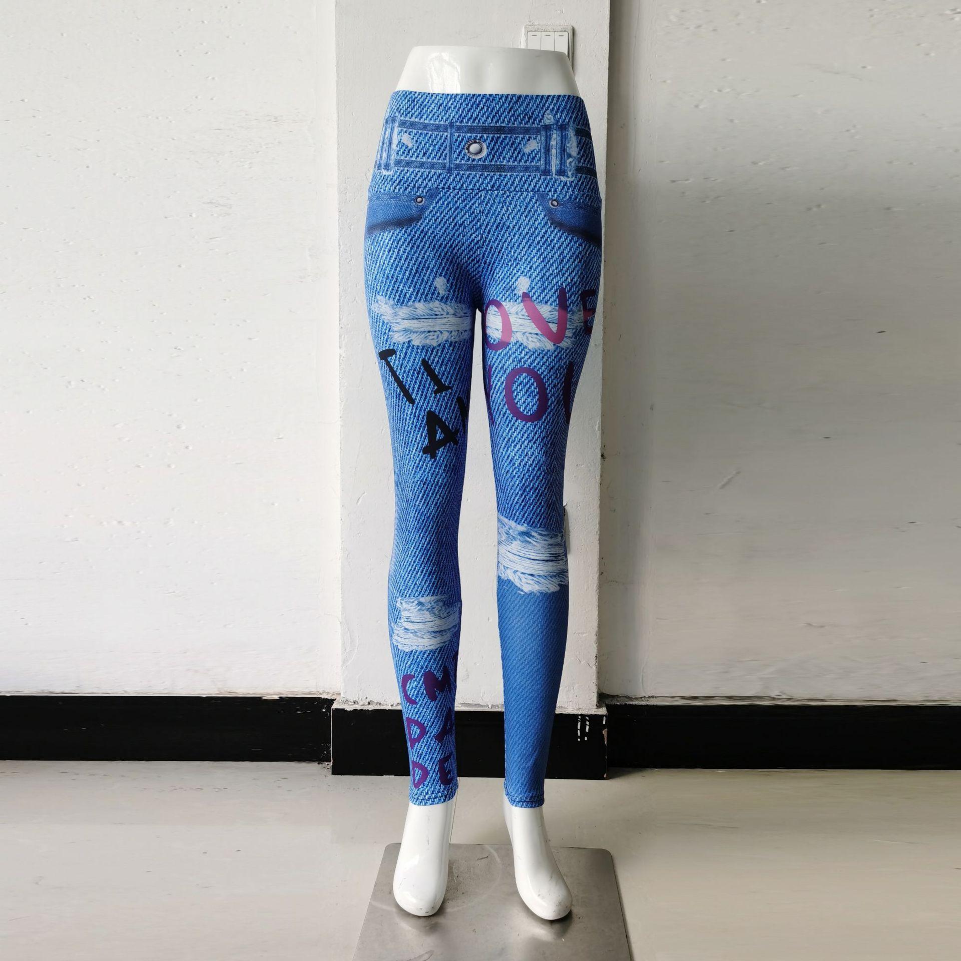 Compre Calças de Yoga Femininas Estampadas Jeans Justas Levanta Bumbum Leggings Secagem Rápida Cintura Alta Elásticas Corrida Esportes Fitness no atacado no Joom.pro