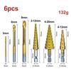 Broca de pagode Conjunto de 3 peças Haste hexagonal Ranhura reta Placa de titânio métrica Perfuração Alargador Broca de passo Conjunto de 3 peças Broca de passo
