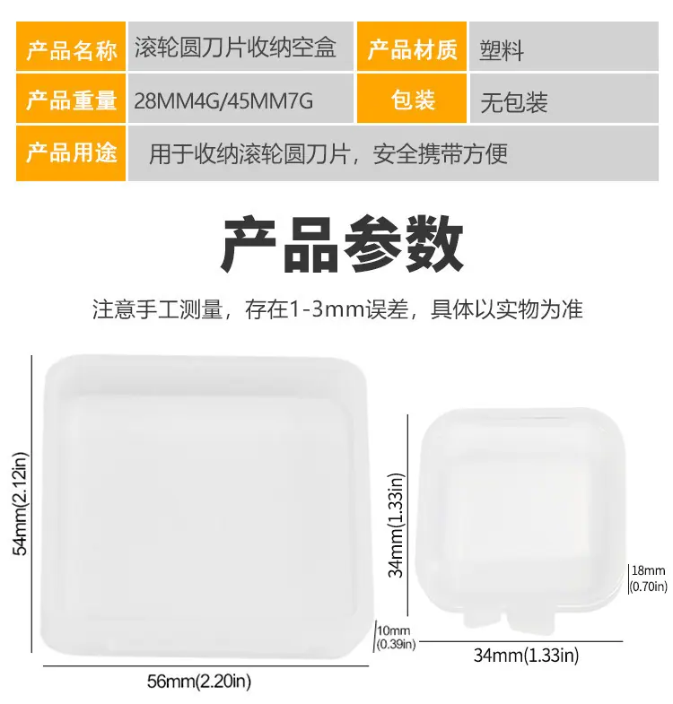 Caixa vazia quadrada de 45mm: 54*54*10mm