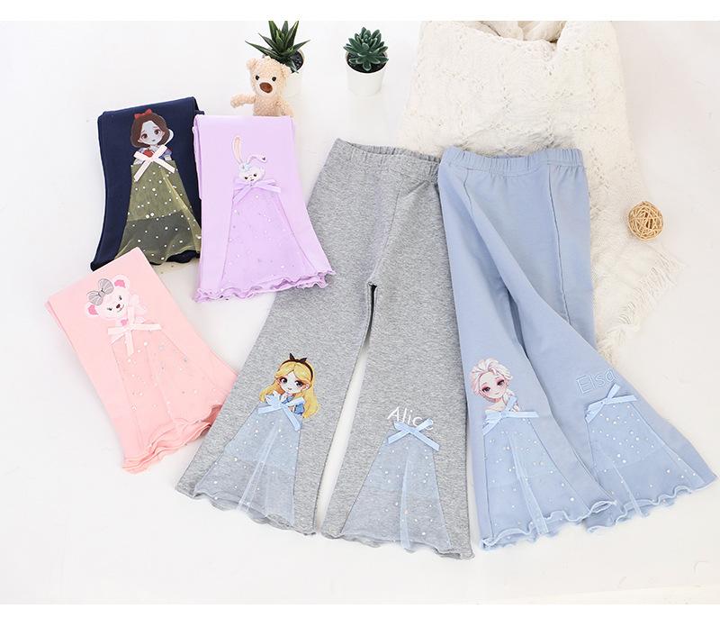 Bebê Menina 2024 Primavera e Outono Novas Leggings Outfit Estilo Ocidental All-Match Bonito Desenho Animado Princesa Elsa Super
