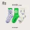 Meias de Estudante, Meias Infantis, Atacado de Zhuji, Outono e Inverno, Meninos e Meninas, Algodão Penteado, Meias Cano Médio Sem Costura, Meias Xadrez de Desenho Animado