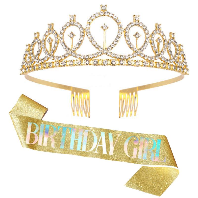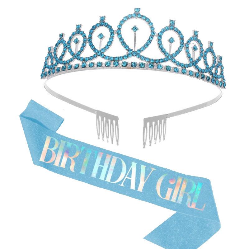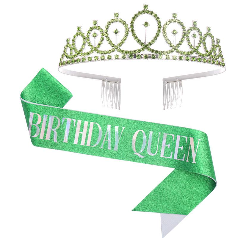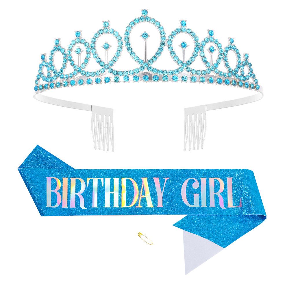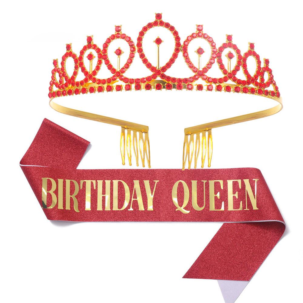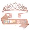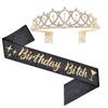 Jóias de aniversário Coroa brilhante Menina Strass Faixa de cabelo Cinto Rainha Etiqueta Cinto Decoração de aniversário Artigos para festa